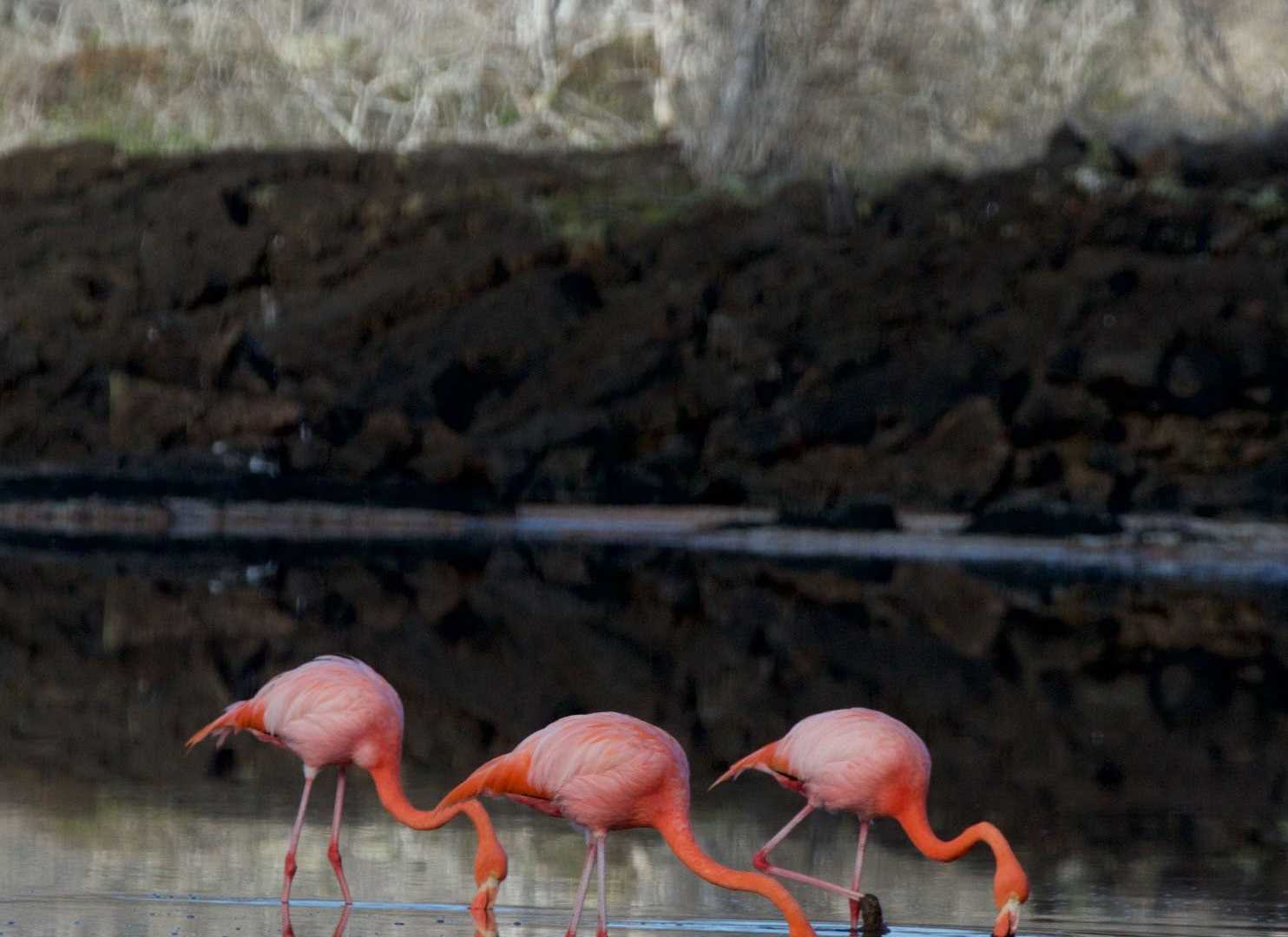 This journey brings us to new and exciting contrasts at every turn as we awaken at Cormorant Point on Floreana Island. An early morning landing awaits us as the clouds rise and a sparkling olivine beach is underfoot. The slowly rising sound of Darwin finches and Galapagos flycatchers tells us that nature never stops as we note a strange call in the distance. After crossing an isthmus, we find a white sand beach with remnants of last season’s nests from the Pacific green sea turtle. Small semi terrestrial hermit crabs patrol the dunes looking for sustenance. The occasional frigate bird flies overhead also searching for food. As we get close to the shoreline we notice diamond stingrays feeding in the shallows with the wave action upturning small crustaceans allowing the stingrays to feed. As we return to our landing beach we pass by a brackish pond that has various greater flamingos feeding in the shallows and we realize that they were making the strange call previously. The small population of greater flamingos feeds among the brackish ponds of the Galapagos and obtain a bright coloration due to the brine shrimp it is feeding upon. Along a small cliff area, we notice various blue footed booby pairs raising chicks. A female blue footed booby returns from feeding and takes over the nest with a newly hatched chick and egg awaiting it. As we return to the ship all of us note the drastic difference between the previous island and the new expression of this one. As we navigate to Champion Islet we are able to do a Zodiac ride to search for the elusive Floreana mockingbird which is a rare species with only a few hundred individuals on a couple of satellite islands of Floreana. The National Park Service with international help is working on the restoration of Floreana Island which includes elimination of destructive invasive species so that this species may eventually return to its original home range. We eventually enter into the water for deep-water snorkeling along champion and we find an abundance of life as we swim among white tipped reef sharks, Pacific green sea turtles, large schools of king angelfish, and of course the ever present Galapagos sea lion.