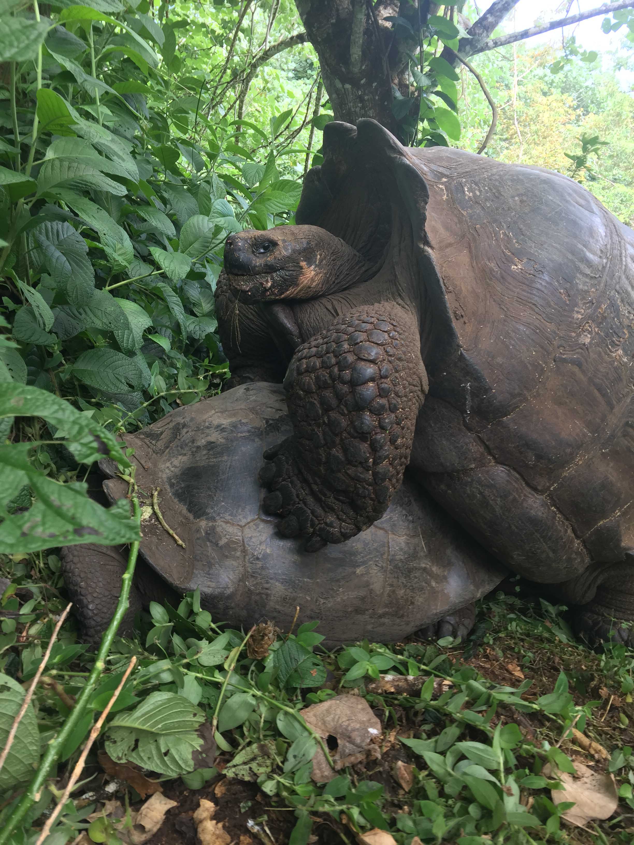 Today we visited Floreana Island, a place where nature and human history combine amazingly. We started our day by visiting Punta Cormorant. Here we explored two different beaches, one with green sand and the other with white sand. Along the trails we spotted blue footed boobies and the Galapagos flamingos, which can only be found in a small number of brackish lagoons around the archipelago. We then came back for breakfast, and afterwards went out for a Zodiac ride along the cliffs of Champion Islet. This small islet is home to one of the few surviving populations of the Floreana mockingbird, a critically endangered bird which we were lucky to spot. To complete our morning, we snorkeled around Champion, where we had the privilege of swimming with a group of young sea lions. In the afternoon, we had a lecture about the human history of the Galapagos, as a preparation for our next outing to the Post Office Bay, a historical site that holds an old tradition of leaving letters that are collected by other visitors and hand delivered when they get back home. We ended our day watching an astonishing sunset while enjoying a glass of wine on the upper deck of our home for this week, the National Geographic Islander.