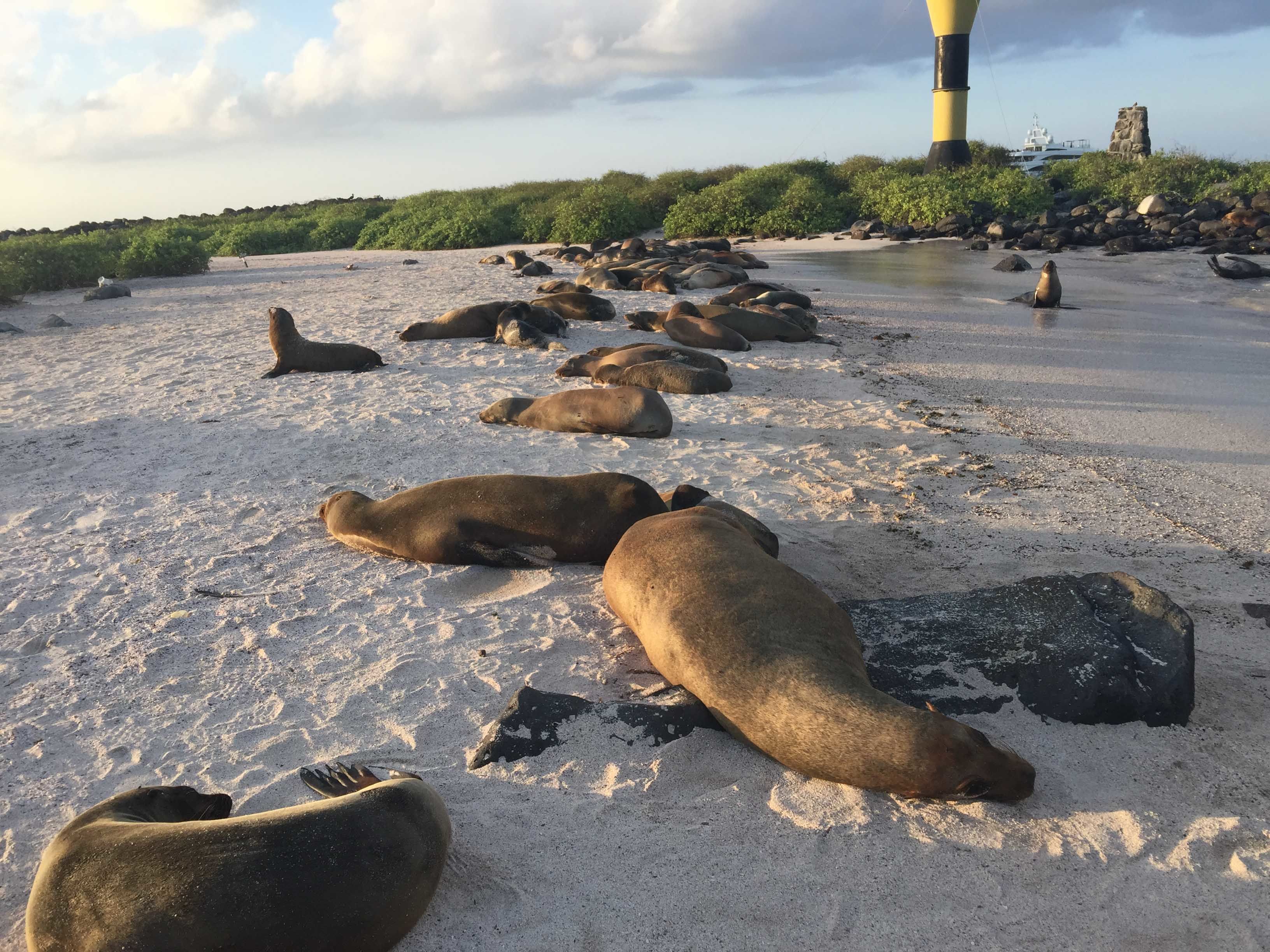 Today we woke up at Punta Cormorant were we disembarked for an early pre-breakfast natural history walk. We had the chance to observe a group of flamingoes feeding in a beautiful brackish pond. Afterwards we visited a beach where we observed a patch of Pacific green sea turtle nests, and the tracks of recent hatchlings that had come out of the nest in the past few days. After breakfast we went for a Zodiac ride along Champion Islet. This was a great opportunity to observe different species of sea birds such as brown noddy terns, frigatebirds and swallow-tailed gulls. We also had the chance to go deep water snorkeling along the shore of this islet, where sea lions were playing along the shore.