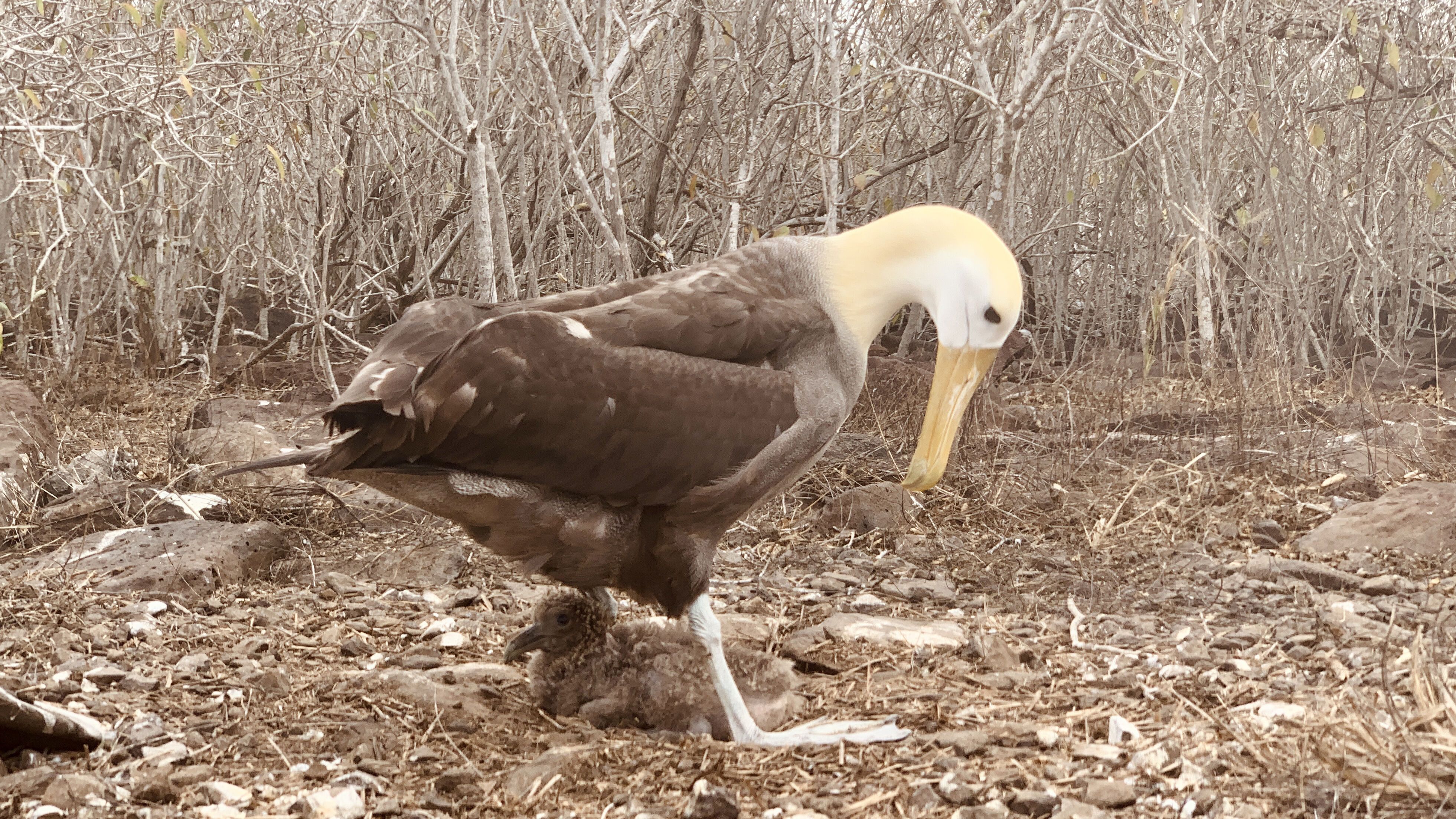 Sadly, our expedition aboard National Geographic Gemini is nearing its end. Our day began with a hike at the base of towering cliffs. A steep ascent led us to a plateau of a palo santo forest, sparse and otherworldly. Almost immediately, we were surrounded by red-footed boobies nesting in low trees and Nazca boobies on the ground. A highlight was spotting a short-eared owl perched silently among a lava crevice, camouflaged and hunting storm petrels. The calls of frigatebirds rang in the air, with their inflated red pouches on full display in a mating show. After our hike we enjoyed water activities, such as kayaking along the cliffs and snorkeling. In the late afternoon, we landed on the coral sand beach of Darwin Bay. Guests enjoyed a relaxing stroll along the shoreline bordered by mangroves and nesting bird colonies. The presence of swallow-tailed gulls, lava herons, and marine iguanas provided excellent photo opportunities.