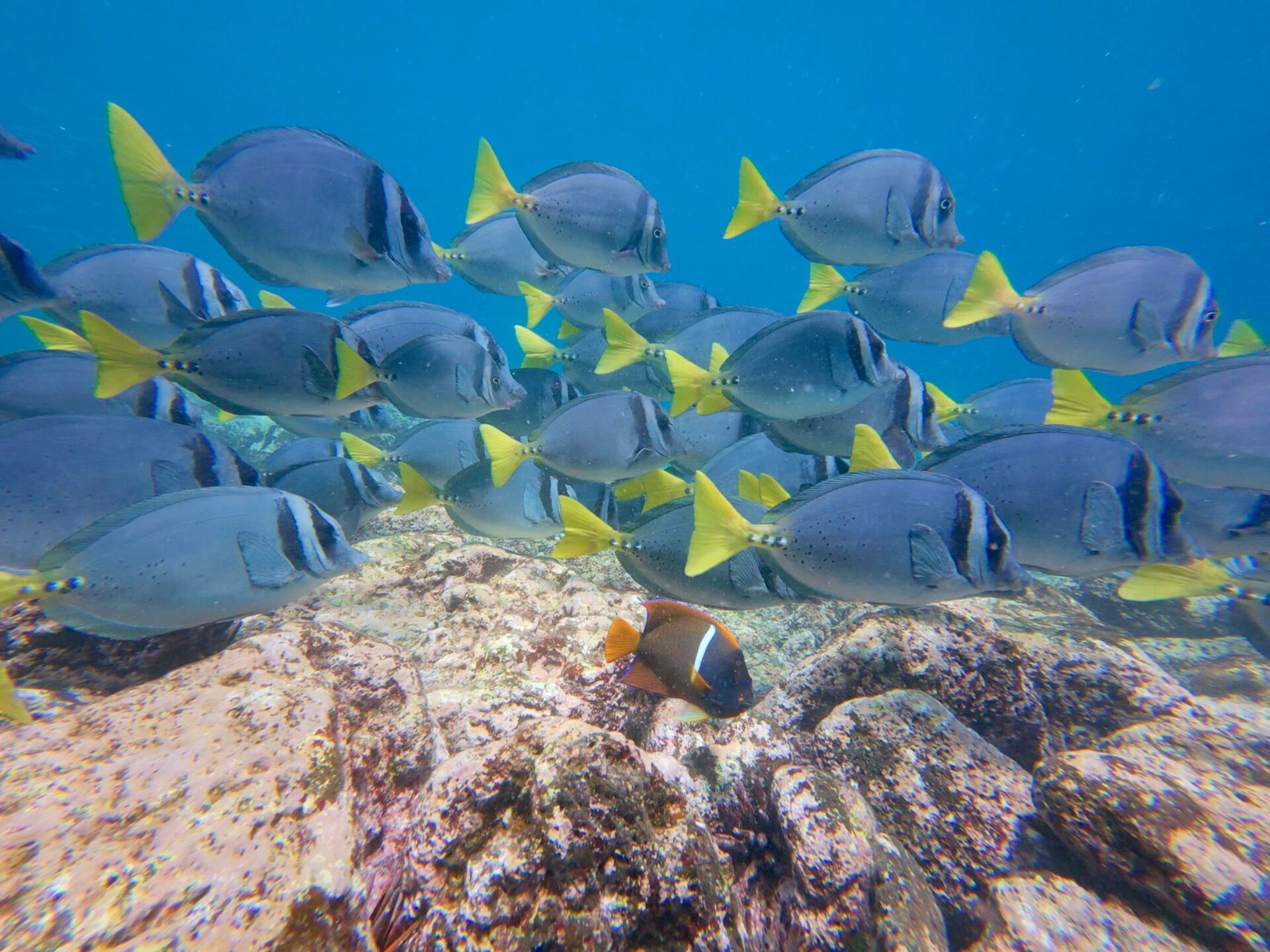 After our hike, some of us snorkeled at Champion Islet, swimming alongside sea lions and colorful fish while others chose a peaceful bay snorkel. A third group enjoyed a glass-bottom boat tour to admire marine life from above.