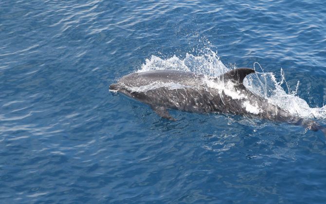 During breakfast, we navigated to Champion Island, where we embarked on Zodiacs again. Just as we headed out, we spotted dolphins coming our way. We had the most beautiful time with these adorable creatures and their graceful porpoising.