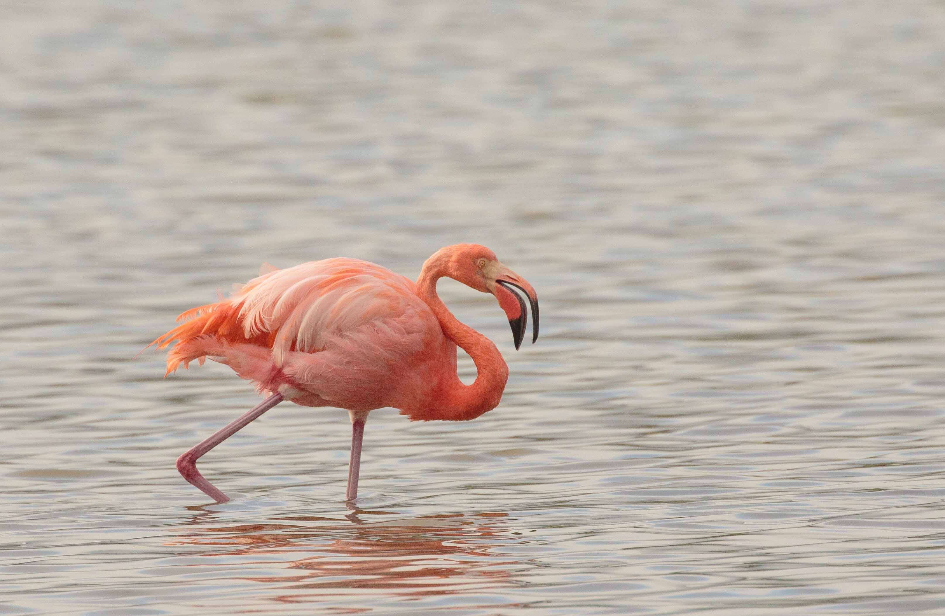 We started our day with a pre-breakfast outing to explore a visitor site known as Cormorant Point. Soon after our arrival, we encountered a large colony of American flamingos. We observed around 30 flamingos feeding in the shallows of a brackish water lagoon. Brine shrimp and other small crustaceans serve as the main source of food for the rare flamingos.