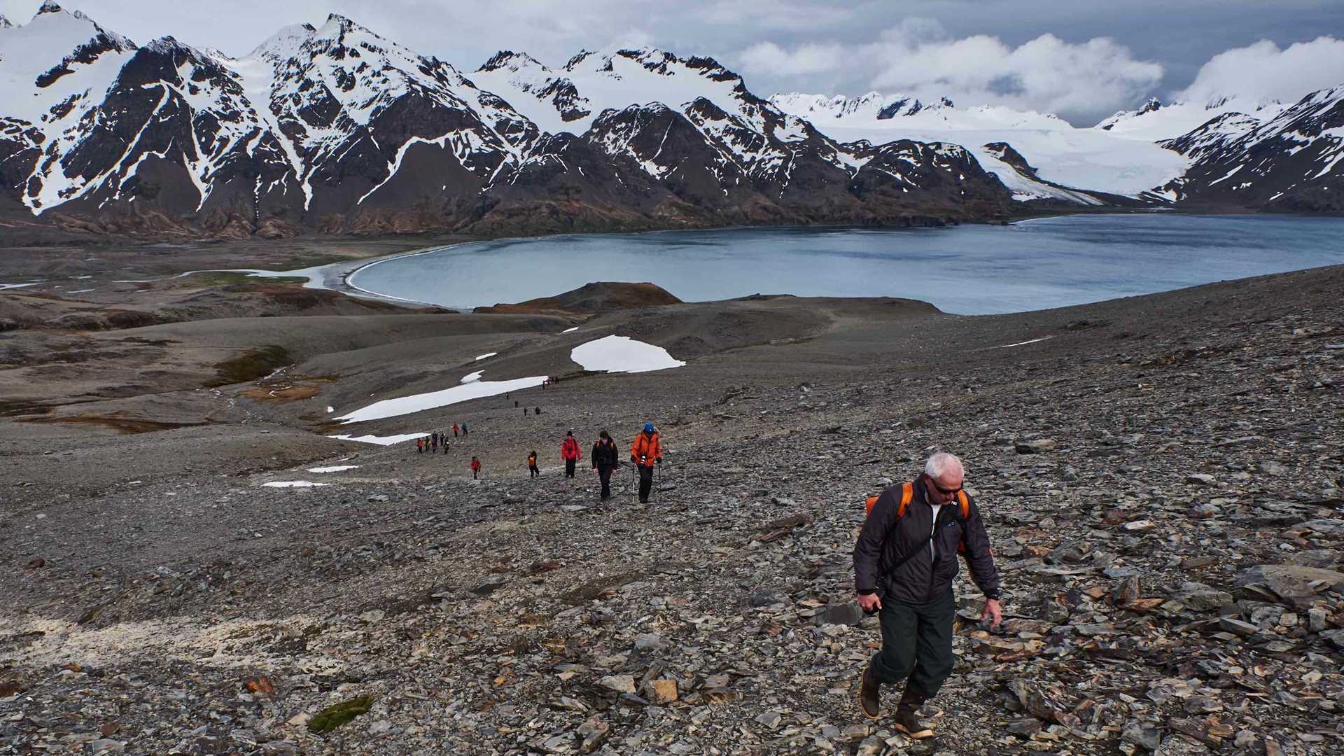 “In the darkening twilight I saw a lone star hover gem like above the bay.” Those beautiful words were Ernest Shackleton’s last entry into his diary the night of the 4th of January 1922. Today was largely taken up with The Boss, as he was known to his men, for a good number of us walked the last few miles of the Shackleton walk; starting in Fortuna Bay and ending at Stromness Whaling Station. The rest of us were either able to walk up to the Shackleton Waterfall or catch glimpses of it from the old whaling station. No matter which activity we undertook we could but marvel at the incredible boat journey that he and five men undertook to reach the island of South Georgia and then three of them were to be the very first people to cross this island. It was an incredible feat and its success meant that the 22 men left on Elephant Island could be rescued.