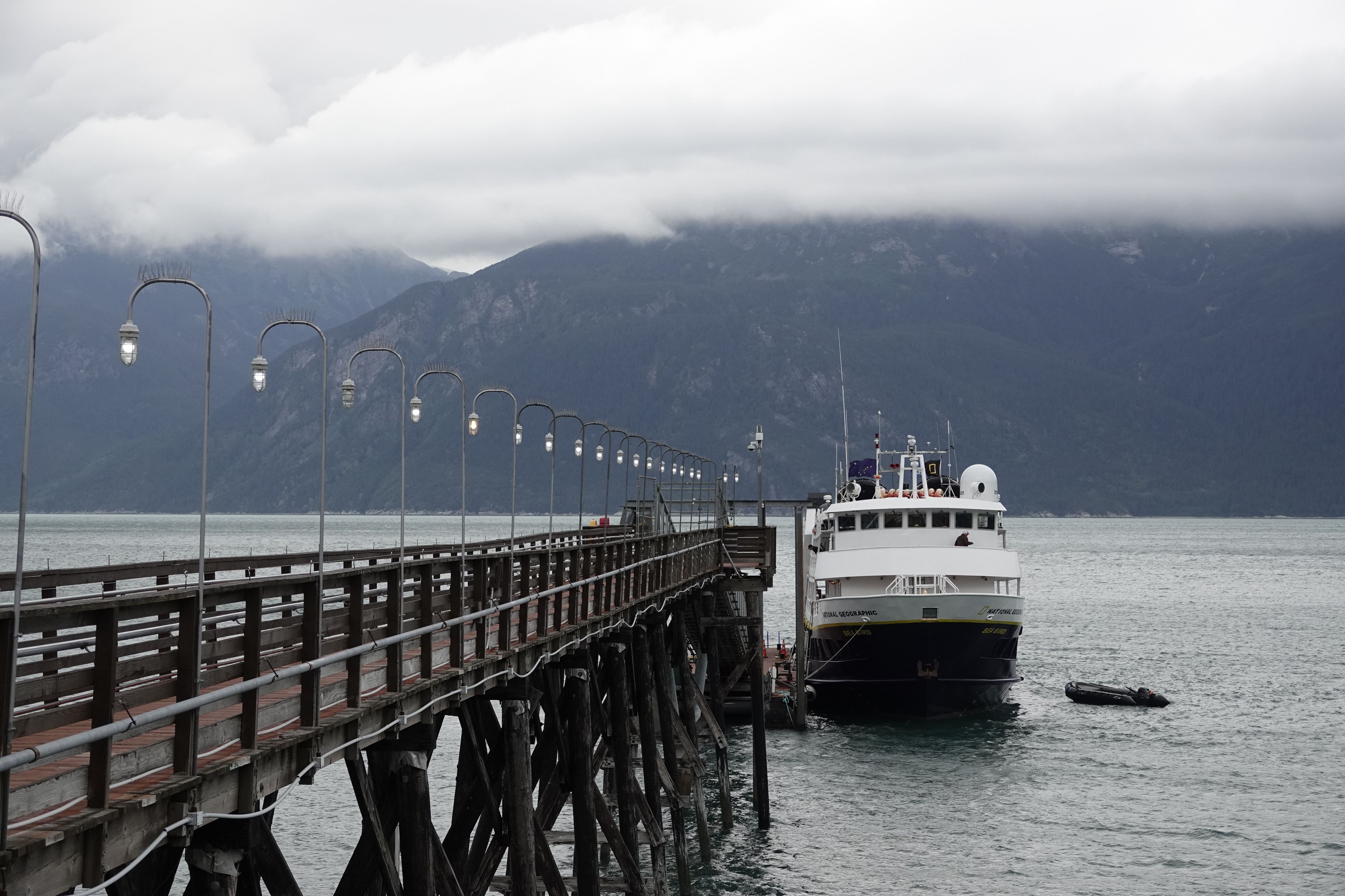 Just after the sunrise on our transit through Frederick Sound up to Kelp Bay, our bridge team spotted feeding whales. As we all sleepily emerged from our cabins and tottered outside, still groggy with coffee in hand, whales surrounded our ship. The morning light was soft and the waters calm, and the whales so close their breathing made you jump. There were around 20 whales spotted and some as close as 15 feet from the ship.