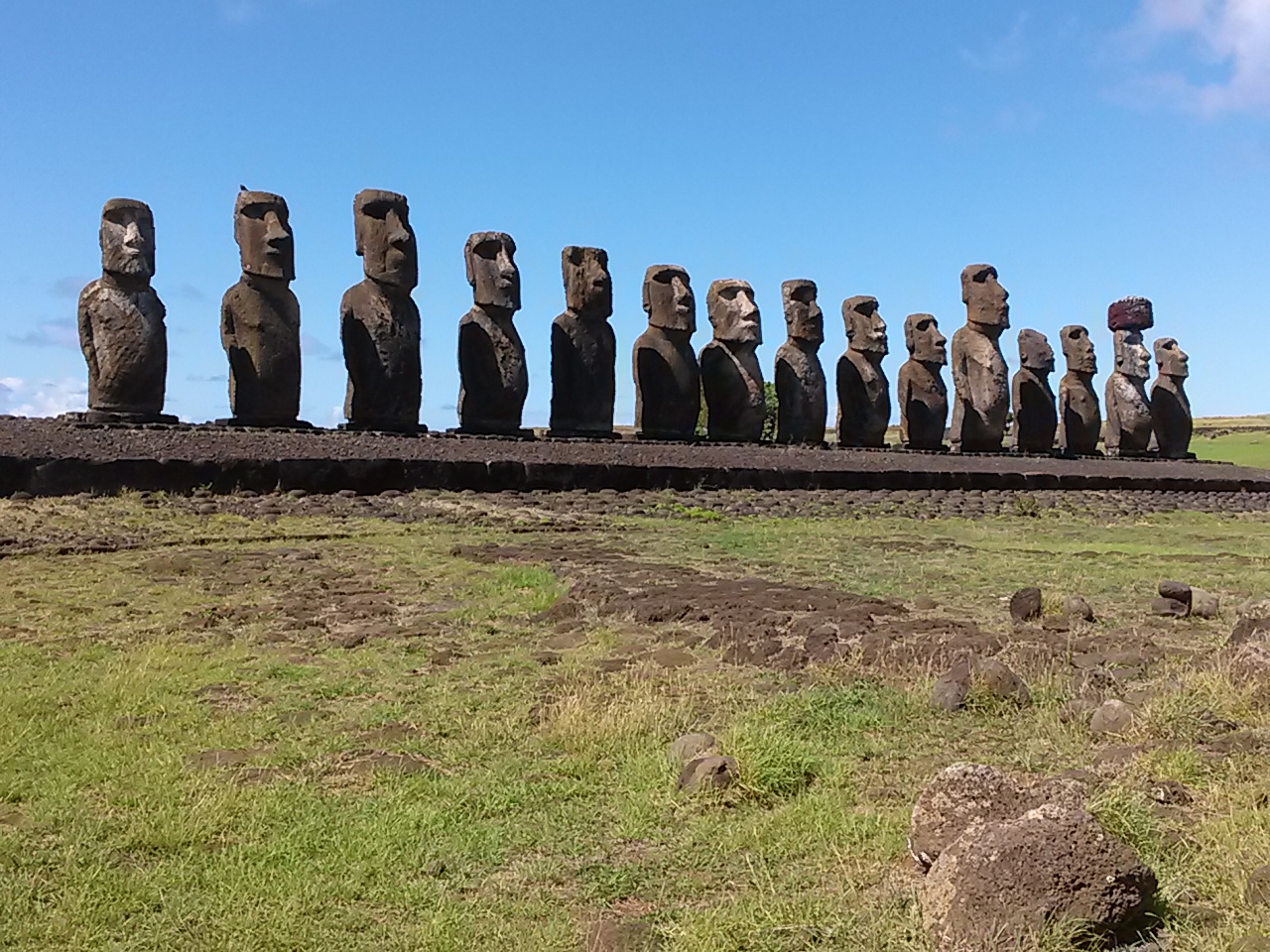 Our expedition to Polynesia began in Easter Island, also known as Rapa Nui (broad paddle) and Te Pito Te Henua (navel of the world). We spent three very fulfilling days exploring Easter Island, and in this time were able to see all the most important sites. This is perhaps the most isolated habitable land in the world, located 3,790 km (2,350 mi) west from Chile and 2,250 km (1400 mi) east from Pitcairn, the two nearest habitations. The island is triangular in shape, with an extinct volcano at each corner. It is relatively small and measures only 23 km (14 mi) E‑W by 11 km (7 mi) N‑S, covering about 166 sq km (64 sq mi) in area. However, the volcanic Plateau of Easter Island is much larger and measures some 250 km (150 mi) in circumference. The surrounding waters are more than 3,000 meters (10,000 ft) deep in some places. Easter Island was colonized by Polynesians probably between AD 900 and 1000, according to the latest radiocarbon dates. They spoke an eastern Polynesian dialect that was related to Marquesan and Hawaiian and linguists have estimated Easter Island language has been isolated for more than a millennium. When we think of Easter Island, we think of bizarre and fascinating megalithic statuary. The giant stone statues represent deified ancestors and were once an important, actually dominating, part of the island’s culture. There are about 900 moai known to exist. The design and style of these incredible statues, or moai, evolved here in isolation and are unlike any other statues found in Polynesia (or the rest of the world, for that matter). The moai were erected facing inland in order to watch over and protect the living descendants with manna provided by the departed ancestors represented by the statues. Apart from some of the unfinished moai still situated at the main quarry, all of them had been knocked down (some by earthquakes, but most by rival clans) by the end of the 19th century. Jacob Roggeveen was the first European to sight Rapa Nui. This occurred on Easter Sunday, 1722, which is why we know it as Easter Island. Therefore, the written history of this fascinating lace is only about three centuries. The rest of our knowledge has come from careful archaeological research and local oral traditions. We missed Easter day on Easter Island by just two days. Here is a recap of our experiences at Easter Island. Wednesday: After checking into our rooms at the beautiful Hangaroa Eco Village and Spa, we headed out to the restored Ahu Tahai for our first close-up views of the famed megaliths. This monument includes five moai, as well as a few isolated moai and some house foundations. Most of us opted to walk back to the hotel in the evening, which gave the chance to enjoy some free time and check out the town. Thursday: Today, we concentrated our efforts in the eastern region of the island. Most of us opted to go out to Tongariki, the site of the largest Ahu on the island, in order to watch the sunrise. It was as beautiful as we had hoped. This was the site of a very large and extensive village at one time, and the restored Ahu contains 15 massive moai. A little later, everyone made their way to Rano Raraku, the most famous place on Easter Island. This is the quarry site where nearly all the moai found throughout the island were carved out of the western slope of the volcano. Many of the moai were abandoned before their carving was complete or before they were moved to the final sites. Numerous statues remain upright, mostly buried in the shifting volcanic ash sands, so that only their heads are exposed. A pathway system allowed us to view these wonderful megaliths up close and conditions were perfect for photography. We all then went over to nearby Tongariki (where many of us experienced the sunrise a few hours earlier) for more time to explore and learn about the human aspect of the site. The site was restored in the 1990s by some of those guiding us, notably Claudio, Patricia, and Edmundo. A barbecue lunch was offered at an old coconut plantation near Anakena Beach, the nicest white sand beach on the island, where we also had time to view more moai and swim in the protected waters. From here, some of us went by bus to nearby Ovahe and then hiked overland to Ahu Te Pito Kura. Friday: Today, we explored the southwestern area. For most of us, this started at Vinapu, a ceremonial complex with ahus and moai of different ages, including one stone monument very reminiscent of Incan stonework in Peru. Here the stones are closely-fitted rectangular shapes, which look very much like some of the ancient structures in the northern Andes of South America. We also visited the Orongo Caldera, where we learned about the amazing Birdman Cult. a yearly contest that pitted champions of the various clans against each other in a competition to obtain the first sooty tern egg of the season. The winning clan chief (and his people) enjoyed all kinds of benefits for the ensuing year, until the next competition. We saw the houses in which the important people lived during these events, and could easily understand the dangers involved with the competition when we looked at the little offshore islets where the competitors challenged each other. After lunch, we visited Ahu Akivi, the first restored site, which was overseen in the 1960s by Professor Bill Mulloy of the University of Wyoming. This operation set the standard for all ensuing restorations. We also had the chance to visit Puna Pau, where the red top knots that adorned the completed moai were quarried and shaped. And, some of us opted to explore the Ana Te Pahu lava tubes. However, only a few people actually went far enough inside the cave to climb out a different access point. In the late afternoon, we arrived back at Hangaroa and were met by Zodiacs, which transferred us onto National Geographic Orion, which is to be our home for the next couple weeks.