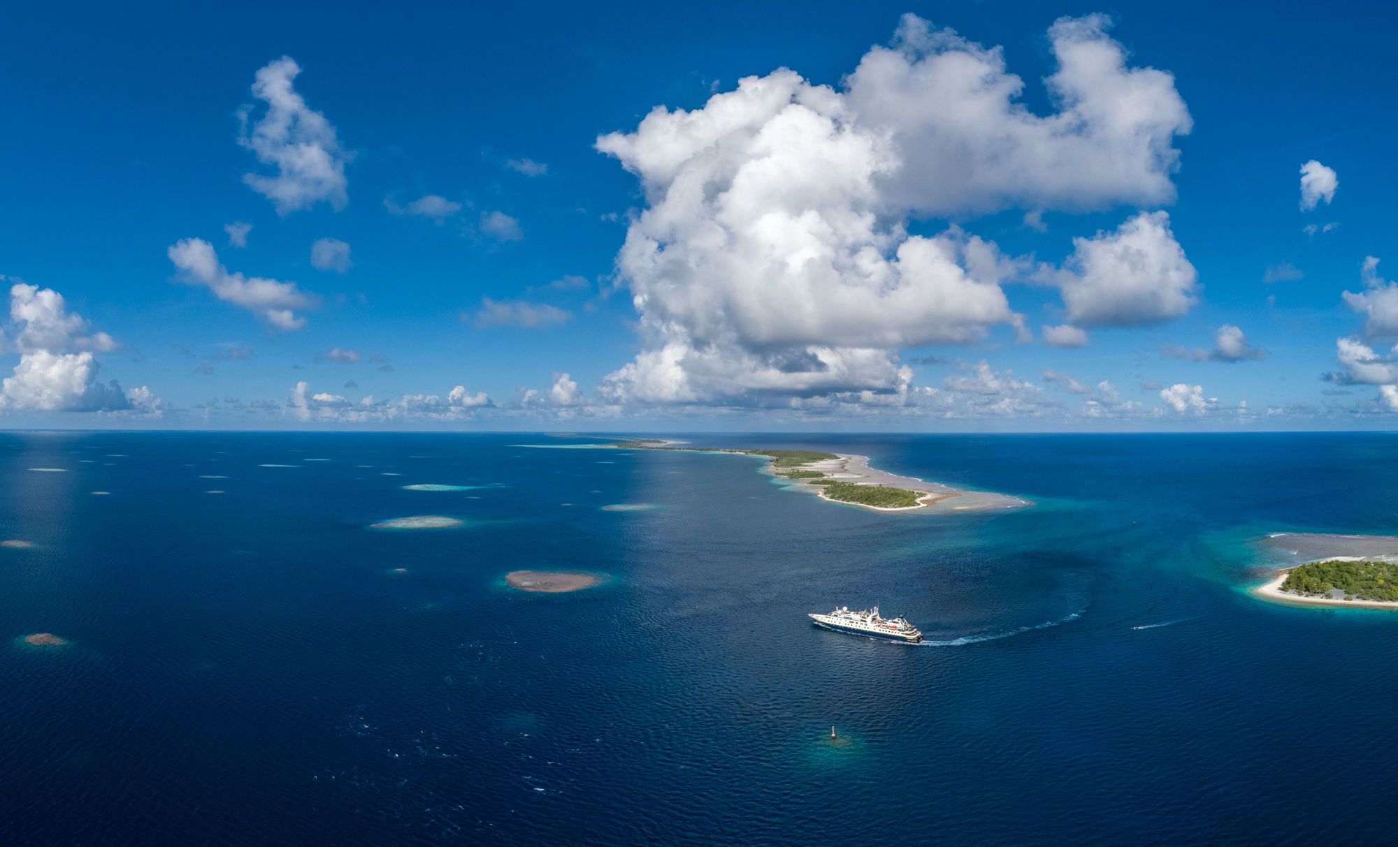 It was another spectacular day in paradise today in French Polynesia. We were fortunate to have a surprise stop at Tenararo Atoll this morning to enjoy the ocean and everything within it. During breakfast, the expedition team prepared the platform for snorkeling and the glass bottom zodiac for viewing the underwater world from the comforts of a dry and shaded boat. By the time we finished breakfast, everything was ready and the exploration began. Those that were certified to dive ventured off with the various dive masters to get really up close and personal with the fantastic reef that surrounds this atoll. The rest of the day was spent at sea, enjoying the comforts of the ship as we ventured off to our next destination. The light winds and scattered clouds made for a perfect setting to spend some time on deck getting some sun and enjoying the jacuzzi. We also learned how to better process our photos from our photo instructor and enjoyed a tour of the galley, where all of our delicious food is prepped. It could not be a more idyllic day here in the South Pacific.