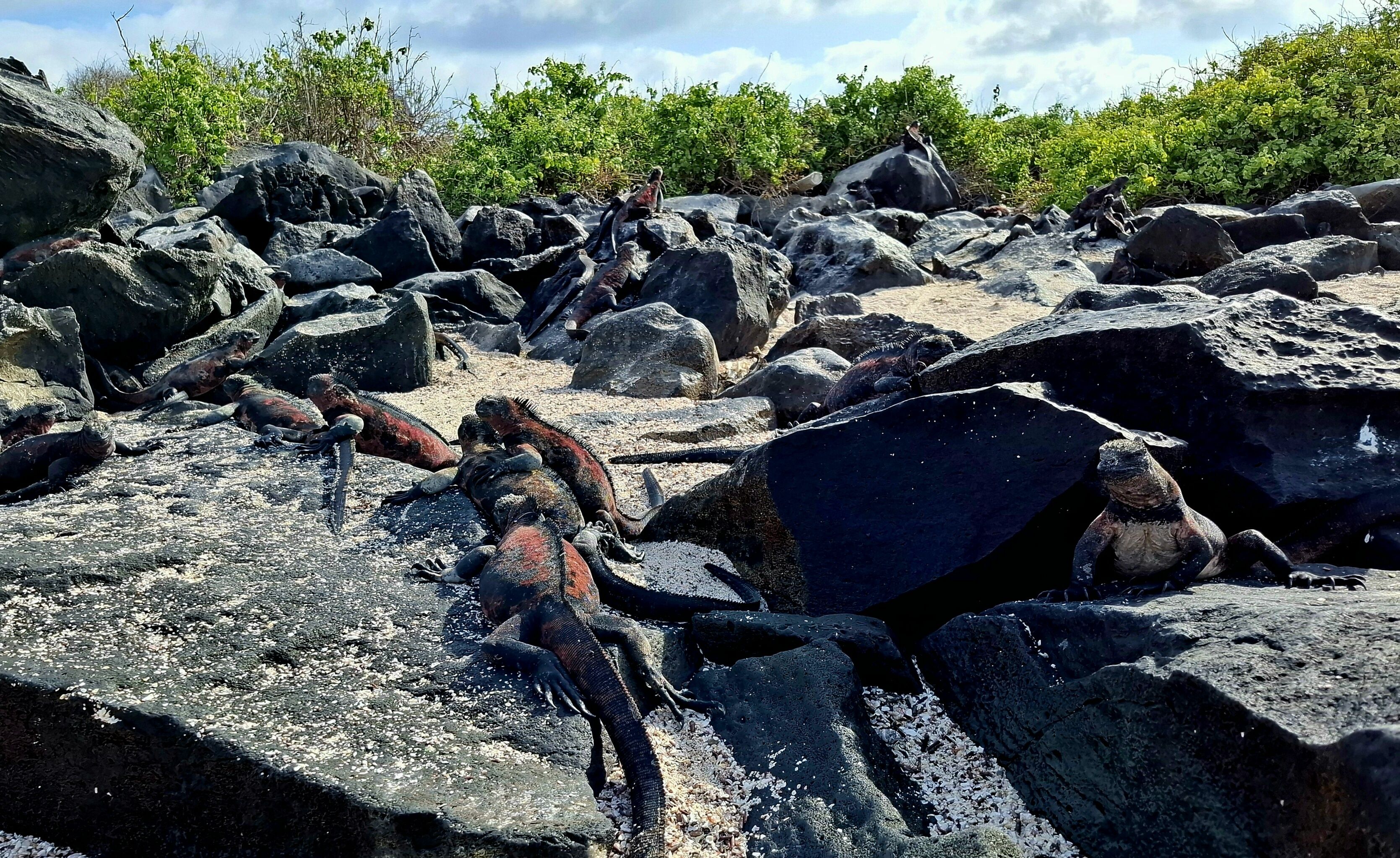 Today’s expedition began with a morning visit to the dramatic Sullivan Bay lava field on Santiago Island. Guests explored the intricate patterns of the pāhoehoe lava flow, observing its rope-like formations and scattered pioneer plant life—offering a vivid lesson in volcanic geology and ecological succession. In the afternoon, we hiked to the Bartolomé viewpoint, where we were rewarded with one of the most iconic landscapes in the Galápagos. From the summit, the stunning contrast of Pinnacle Rock, turquoise waters, and surrounding volcanic islands reflected the archipelago’s raw beauty and geological history.