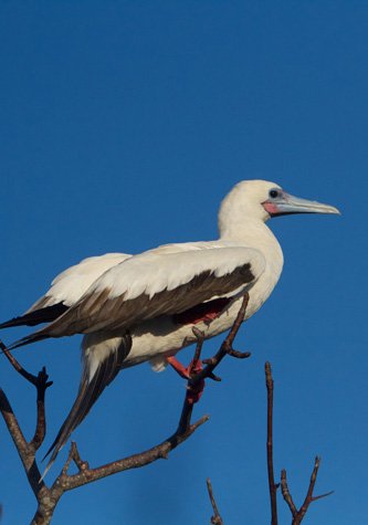 The island of Genovesa is one of the northern formations of the archipelago. Today we landed on Darwin’s Bay which is a sandy beach made of broken pieces of coral surrounded by the eroded cliffs of the caldera. This is the habitat of many species of seabirds, so this island is also known as “bird Island.” As we started the walk we found many swallow-tail gulls feeding their immature chicks that were constantly begging for food. It was just amazing to see the numbers of red-footed boobies doing different things. There were couples beginning their courtship, others making nests, some chicks in the nests, and a lot of immature birds wanting to jump off the trees. These last birds were particularly interesting since we could see on their faces how they were nervous about this, probably their first jump. It was also interesting to learn that the ocean currents have not brought the land reptiles normally found on the central islands so as a result of it, we could only find here the marine iguanas that are actually within the smallest of the entire islands. As a result of the land reptile’s absence the cacti is not spending energy in making strong spines—the spines today were as soft as hair.