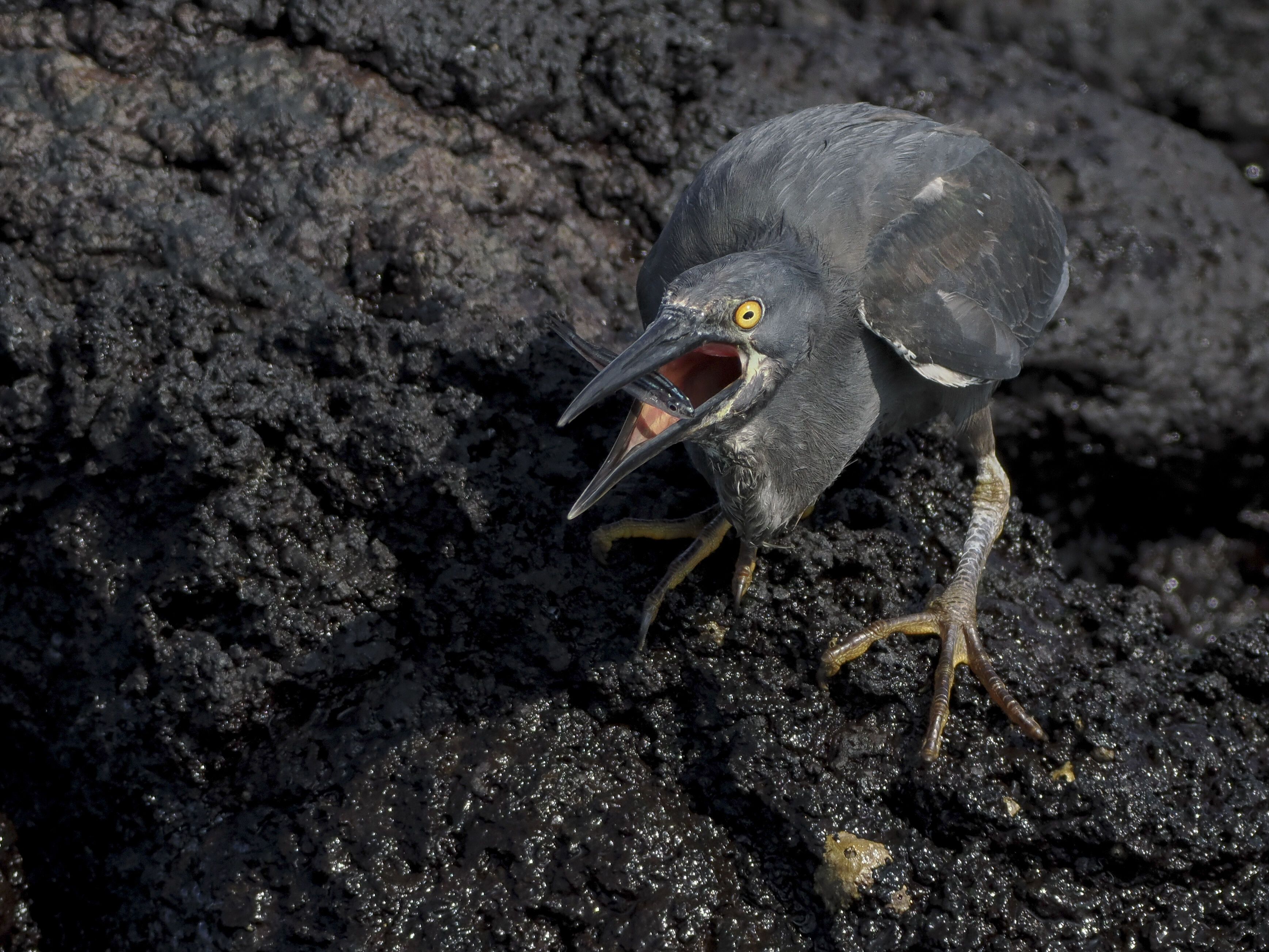 Sadly, our expedition aboard National Geographic Gemini is nearing its end. Our day began with a hike at the base of towering cliffs. A steep ascent led us to a plateau of a palo santo forest, sparse and otherworldly. Almost immediately, we were surrounded by red-footed boobies nesting in low trees and Nazca boobies on the ground. A highlight was spotting a short-eared owl perched silently among a lava crevice, camouflaged and hunting storm petrels. The calls of frigatebirds rang in the air, with their inflated red pouches on full display in a mating show. After our hike we enjoyed water activities, such as kayaking along the cliffs and snorkeling. In the late afternoon, we landed on the coral sand beach of Darwin Bay. Guests enjoyed a relaxing stroll along the shoreline bordered by mangroves and nesting bird colonies. The presence of swallow-tailed gulls, lava herons, and marine iguanas provided excellent photo opportunities.