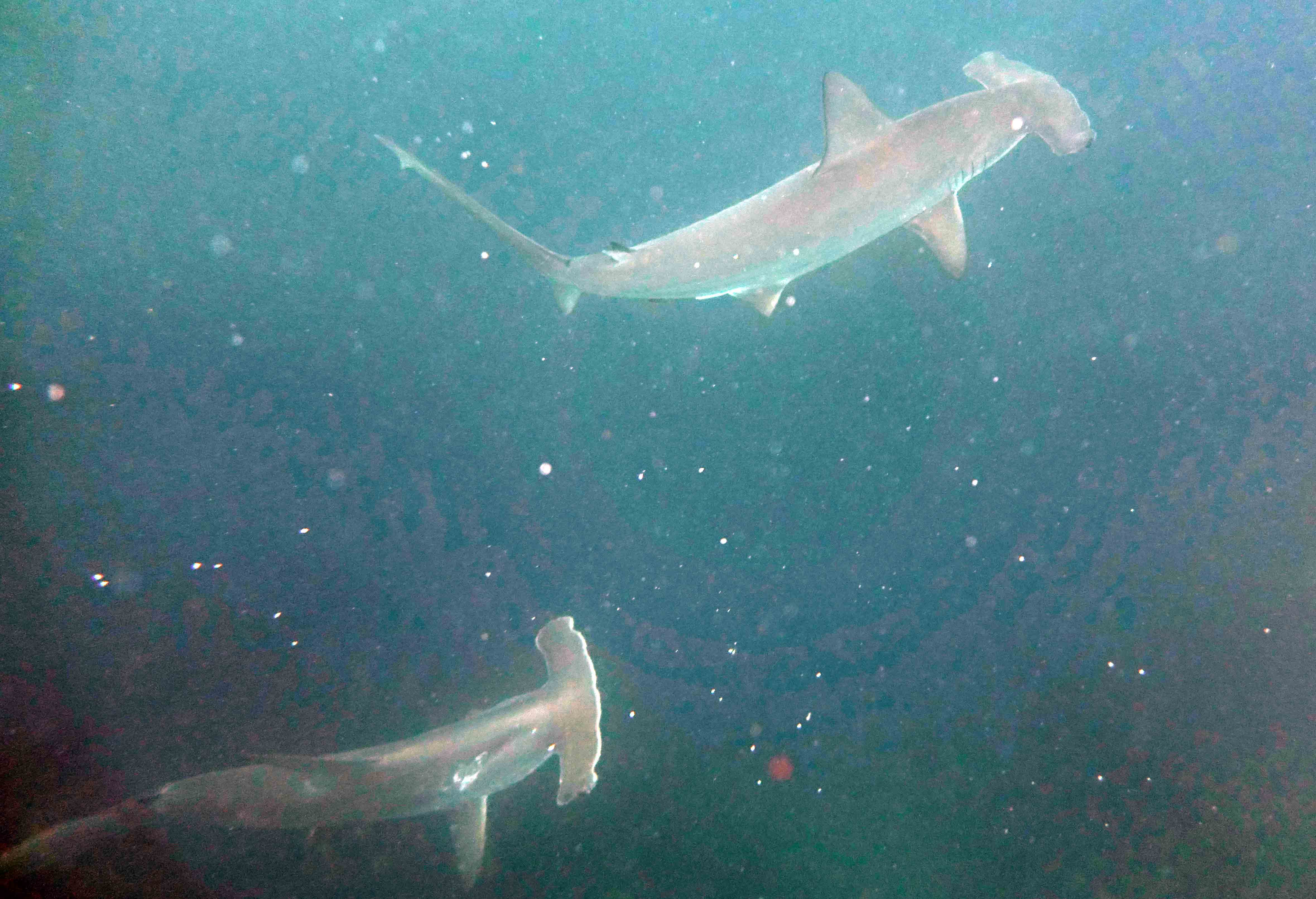 After visit the island, we had chance to snorkel along the vertical cliffs. Colorful fish such us steel pompanos, yellow fin mullets, Moorish idols, manta rays, spotted eagle rays were the delightful of our guests; but probably the best part of the snorkeling was when we observed a group of hammerhead sharks that swam indifferently close to us; we saw more than four, all of then more than 3 meters long.