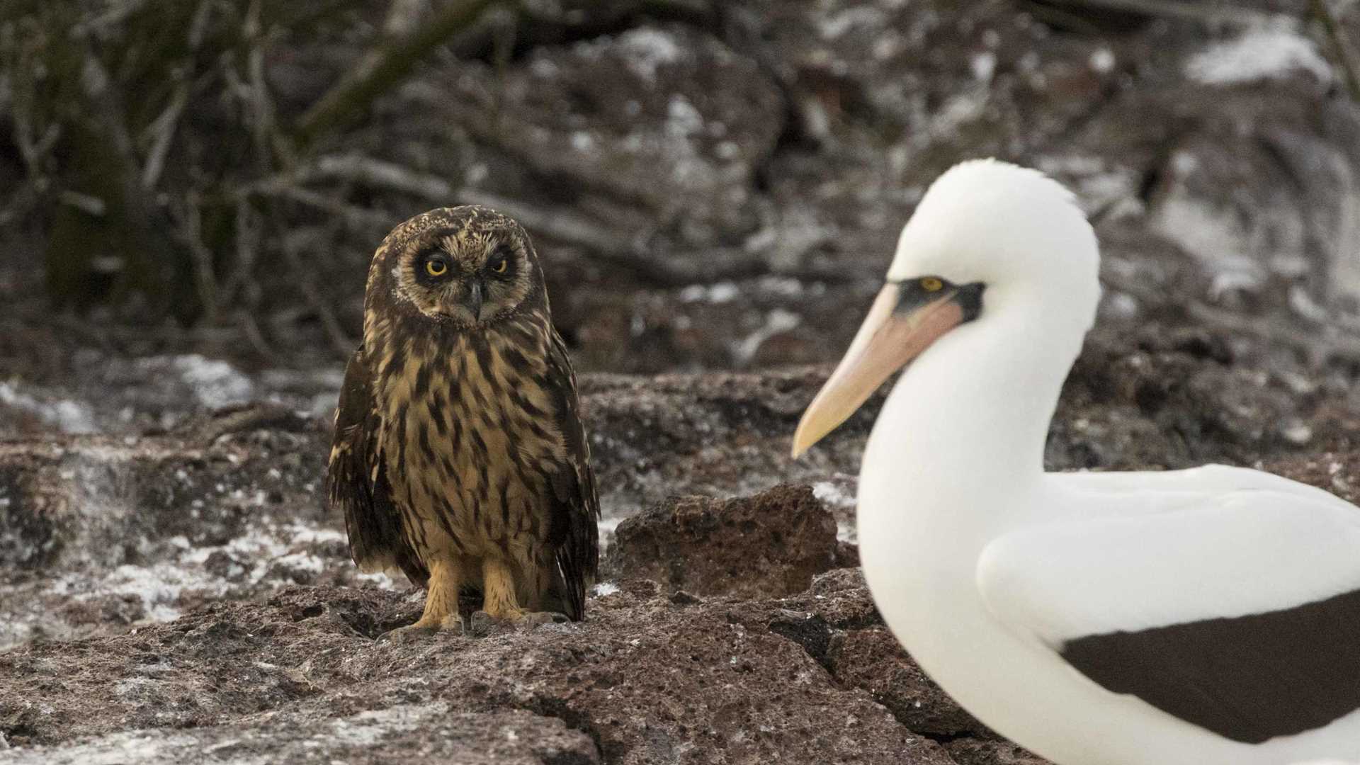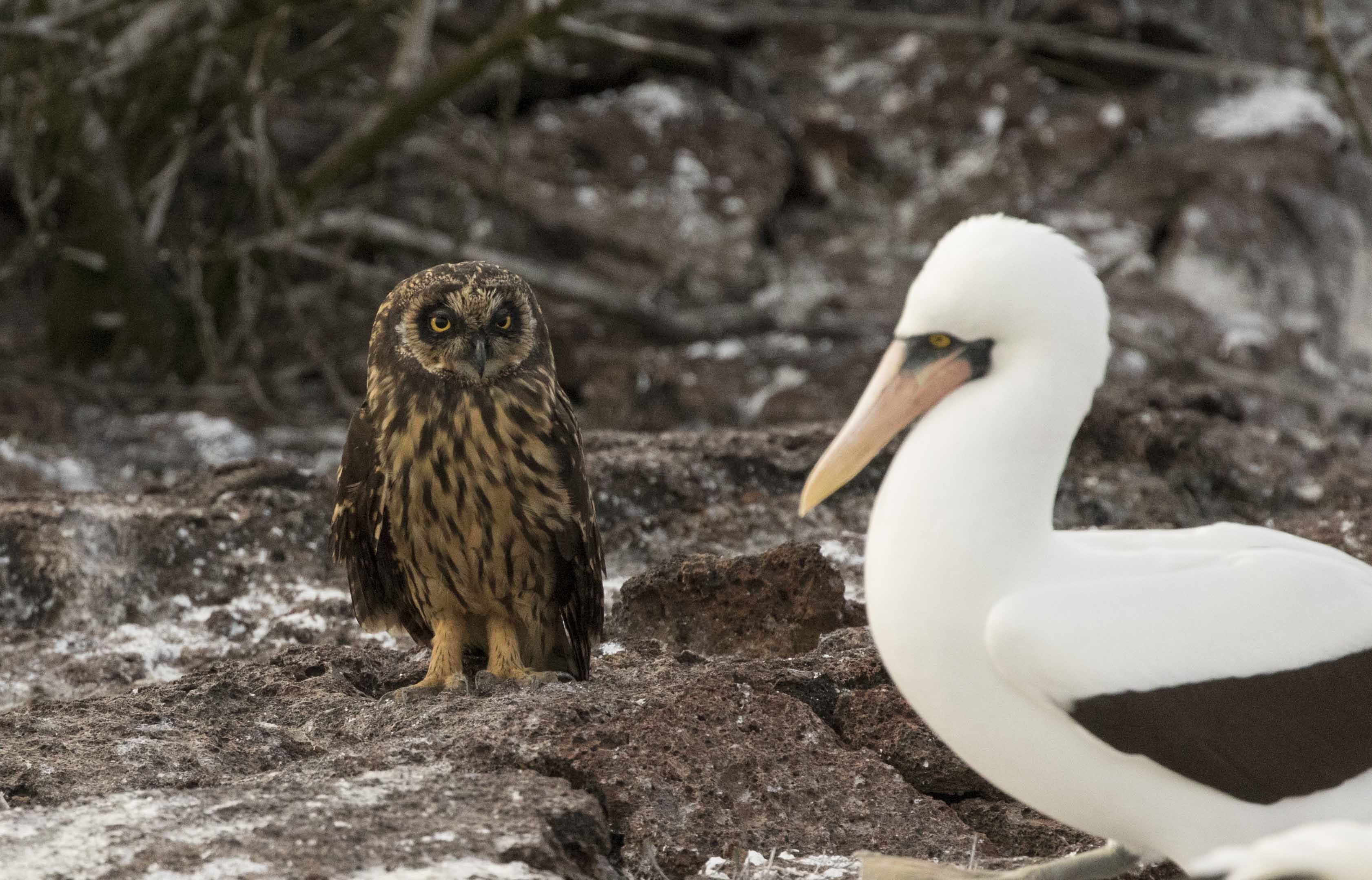 The adventure continued in the afternoon on another part of Genovesa Island. This time the hike started with a 20 meter stair climb to arrive to bird paradise. Nazca boobies, swallowed tail gulls, frigate birds and red-footed boobies welcomed us and as we continued the hike we got to short eared owl territory. We looked for them with our binoculars to be surprised and find them only a few meters away from us.