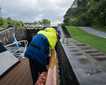 One interesting fact of Genovesa is the absence of terrestrial mammals, giant tortoises, lava lizards, land iguanas that are usually found in the rest of the archipelago. After breakfast, we disembarked to visit a tiny beach at the foot of a very long cliff that surrounds the crater. As soon as we landed, we could see so many sea birds! Everywhere you looked, you could observe these animals doing their daily tasks to survive. This area seemed almost unreal to some of our guests. In the sky, frigates fought against red-footed boobies to take their food. They chased them and even grabbed their tails to try and make them regurgitate their food. This aggressive frigate behavior is known as kleptoparasitism. At the end of our short trail we explored a saline water stream that brings baby sting rays to a big pool as well as some lava gulls that benefit from the cool water to thermoregulate.