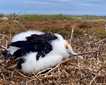 Later in the afternoon, we lead our guests up the steep and rustic steps and across the point of the island to search for petrels and short-eared owl, which is consider the top predator of the island, due to the lack of Galapagos hawks. We identified the large ground finch and the unique sharp-billed ground finch feeding on dry seeds along the lava rocks. On the bushes we admired the many fluffy baby frigates in their nests and the much larger juvenile Nazca boobies. Out on the flat lava flow many storm petrels were swooping around and disappearing into their nest holes. We found several of the well camouflaged short-eared owls that were hunting these numerous petrels.