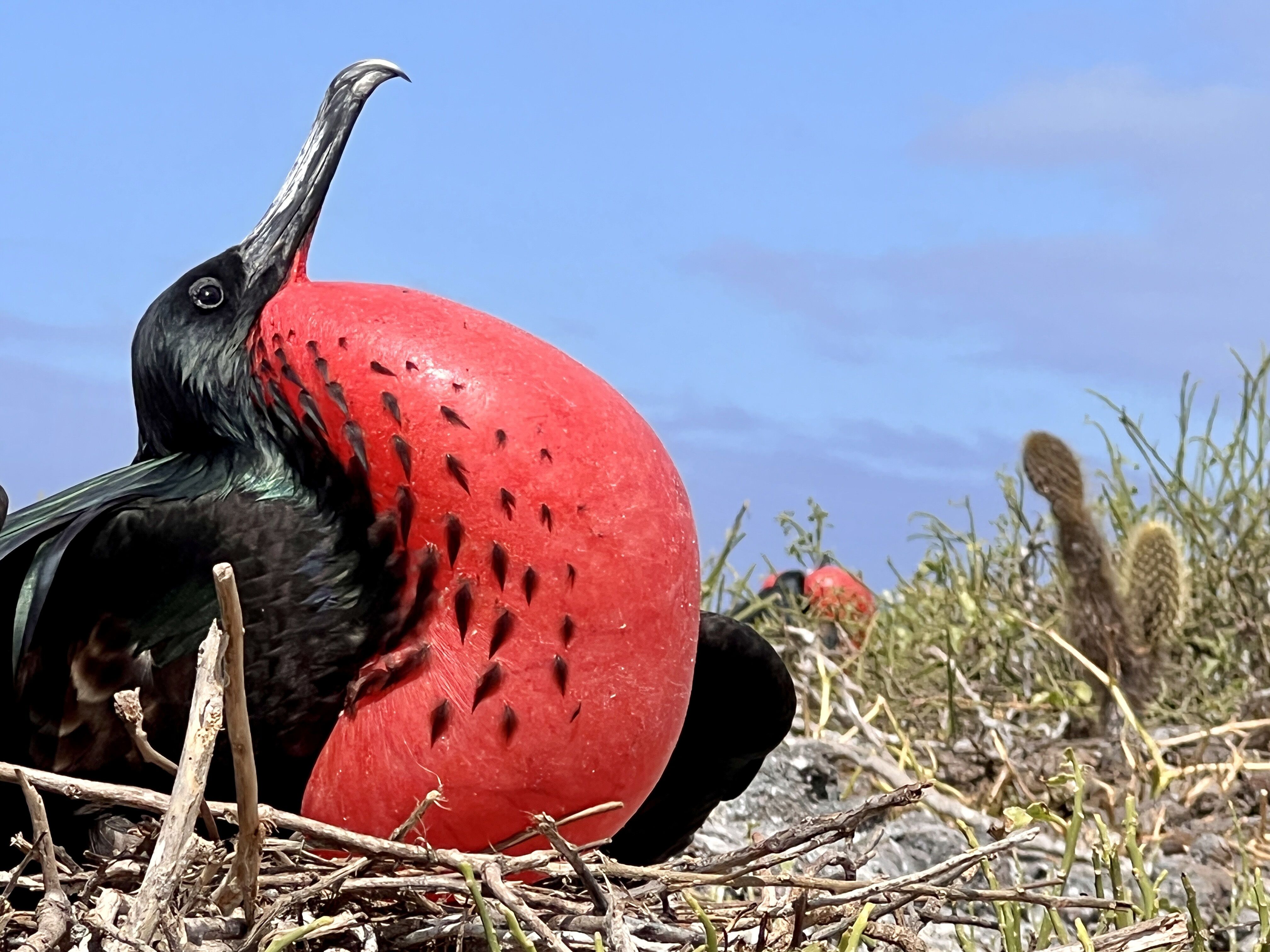 Our first morning outing was an exploration of Darwin’s Bay Beach. This is an extraordinary place to enjoy wildlife at close range. The beach is a sanctuary for nesting seabirds. Red-footed boobies, Nazca boobies, great frigatebirds, swallow-tailed gulls, and yellow-crowned night herons share the space to raise their offspring. We had the opportunity to take close-up pictures of these species, as they do not feel threatened by us.
