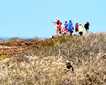 Later in the afternoon, we took a nature walk inland. We found more nesting boobies and mockingbirds. We observed great frigatebird males with their gular pouches inflated to court females. During the second part of the walk, the highlight was a short-eared owl flying around before it seemed to pose for pictures.