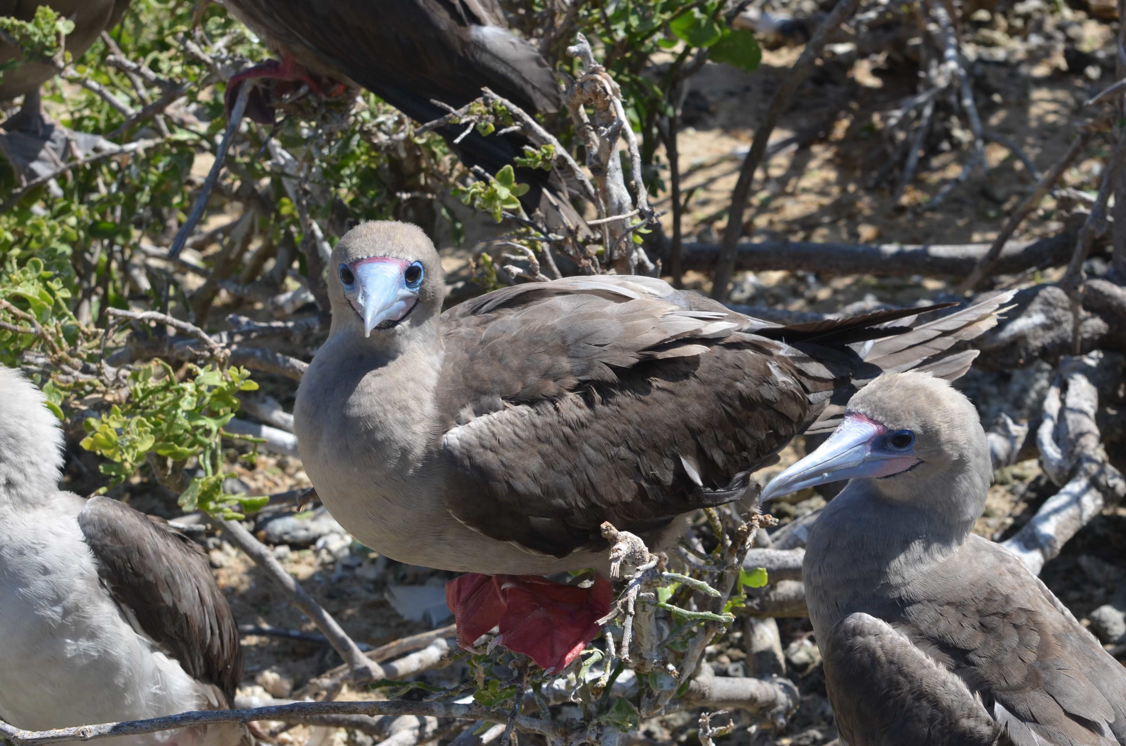 Because of these conditions, Genovesa harbors a unique assemblage of species, including the largest colony of red-footed boobies, an important colony of Galapagos and Maderian Storm petrels, and many other sea birds. In addition, cactuses have soft spines, an adaptation to the lack of grazers (tortoises and land iguanas).