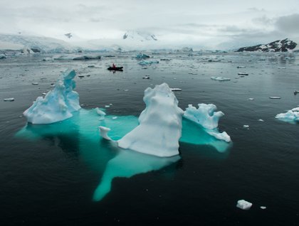 After a hearty breakfast this morning we boarded the zodiacs for a tour of Cierva Cove and the Sikorsky Glacier. As we began our tour into the heart of the cove, we were immediately surrounded by huge icebergs while a light snowfall fell silently onto our zodiacs.