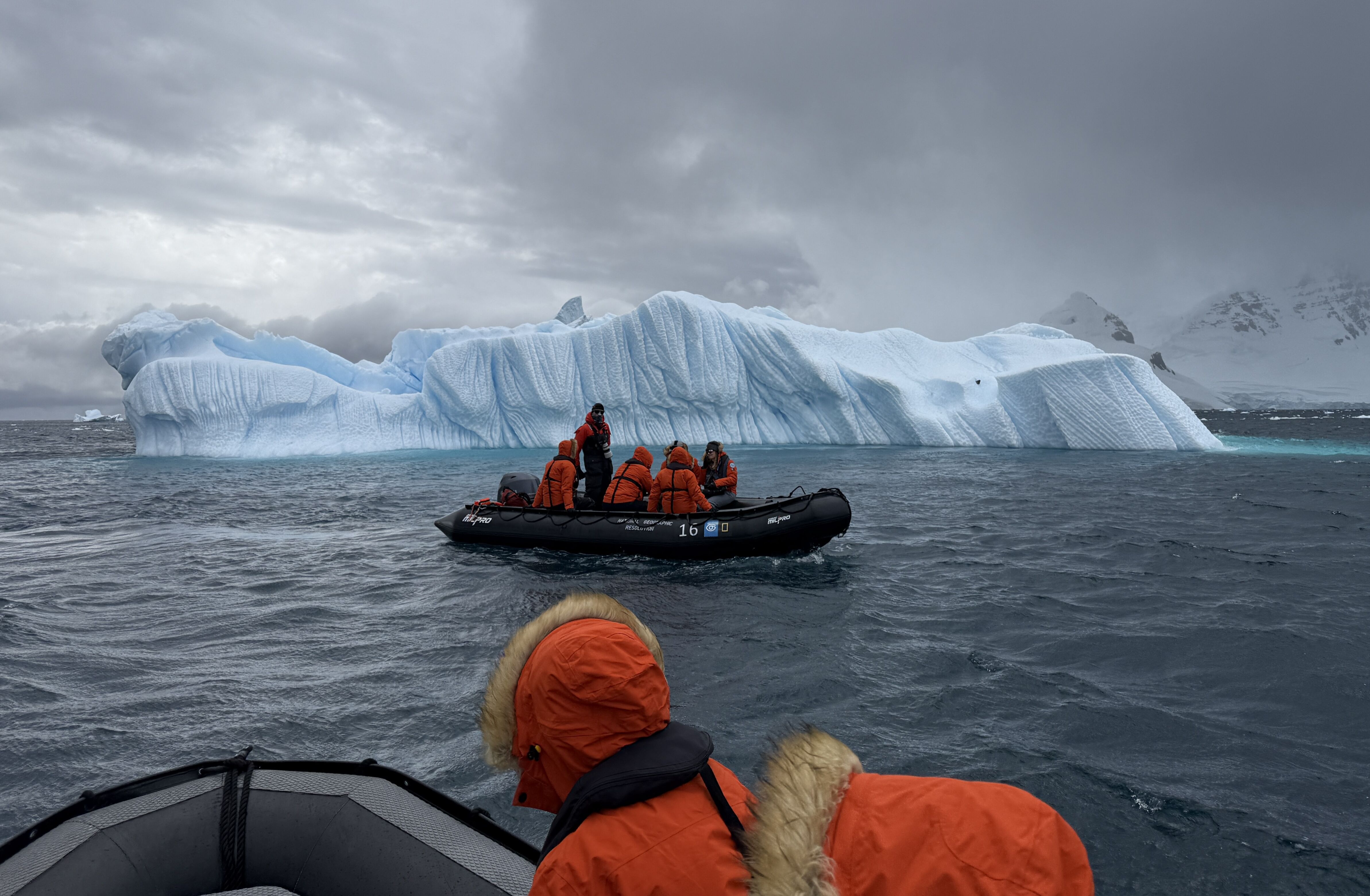 We awoke traveling south in Gerlache Strait on the west side of the Antarctic Peninsula after amazing days in the Weddell Sea with emperor penguins and tabular icebergs. We passed krill fishing vessels and humpback whales targeting the same prey. Young guests from our Global Explorers kids’ education program were treated to a tour of our Zodiac garage by Staff Captain Sam and Bosun Rocky.