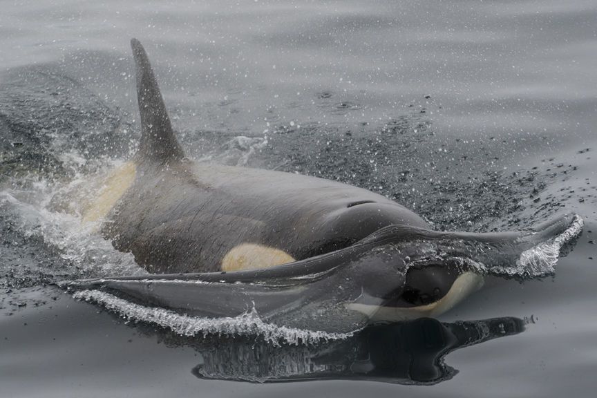 Early in the morning the call came to our cabins “we have killer whales ahead, it’s a good sized pod!” So as most of us scrambled to get dressed, grab cameras and binoculars, and rush to the outside decks, National Geographic Orion slowly worked its way to a closer range. Soon the ship was surrounded by the animals, and they approached us to get a look, some swimming right under the bow! The highlight, however, was when the group cased and killed a penguin right next to the ship; amazing. Later we did a Zodiac cruise in Borgen Bay, followed by an afternoon landing Port Lockroy and Jougla Point.