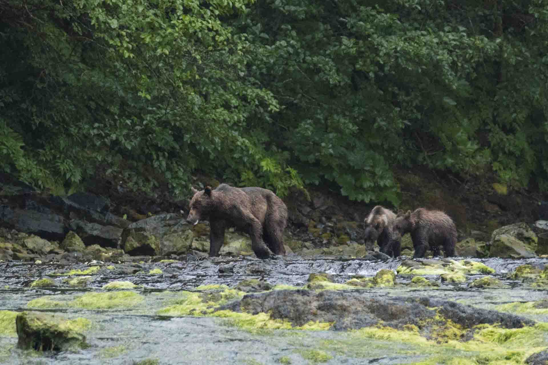 Shortly after the fog had resided we arrived at South Marble Island where we were greeted by the snorting and grunting of the northern elephant seals, kittiwakes flying around and puffins leaping into flight off the rocks into the water. The remainder of the fog settled in a small band about half way up the Island, truly making this a majestic experience. While we were all looking at the wildlife we had the pleasure of listening to our guest, Park Ranger Zak. As we motored onto Gloomy Knob we spotted what at first looked like just one brown bear but it turned out to be mother and three adorable cubs searching the tidal zone for any mussels, barnacles or if they are lucky small fish. We then headed to Margerie Glacier and witnessed some amazing calving. While heading to Bartlett Cove we then had the great pleasure to listen to our other guest, Ranelle, who is a Tlingit Interpreter about the history of the Tlingit.