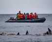 The morning sun found the guests of National Geographic Venture twenty or so miles into the main channel of Glacier Bay National Park. After a stop at Bartlett Cove to pick up our guest speaker, Park Ranger Michael, we were already nearing our first wildlife hotspot: South Marble Island. There we found hundreds of sea lions, dozens of puffins, mother otters with their babies, and a variety of other seabirds. Our next stop was Gloomy Knob, where we saw a record five bears and no less than thirty mountain goats, while humpback whales breeched on the far side of the ship. On the other side of Russell Cut, we had drinks in front of Margerie Glacier. As we pulled away she gave an epic calving, to the applause of all upon the sundeck. We ended our day taking photos of Lamplugh Glacier before slowly making our way out of the park. An unforgettable day.