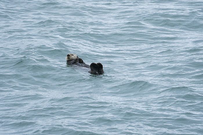 We woke to pretty clouds above the tree-covered hills as we sailed into Idaho Inlet, seeking wildlife. After breakfast, we landed at Fox Creek and hiked into a small waterfall along a salmon stream, through stately spruce and hemlock trees. The temperature was cool in the forest and black-capped chickadees sang to us as we walked along. Kayakers paddled in a beautiful cove with mirror-like waters, and other guests headed out on a cruise along the shoreline to search for wildlife and birds. It was a stunning morning. We sailed to the Inian Islands anchorage during lunch, and soon we were launching our expedition landing crafts to explore. The waters of the Inian Islands and Cross Sound are rich with nutrients due to the mix of upwelling currents and flooding tides, providing a wonderful food source for marine wildlife and seabirds. On this wonderful day, we saw Steller sea lions, sea otters, many humpback whales, and a minke whale. Late in the afternoon, we sailed over near Elfin Cove and went ashore to explore this picturesque and quaint fishing village on foot, making friends with the local dogs and talking with fisherman as we walked along the boardwalks of town.