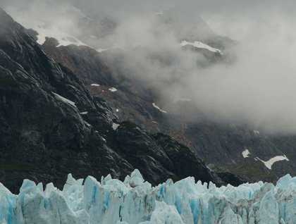 After lunch, we arrived at Margerie and Grand Pacific Glaciers, the terminus of the bay itself. With cloudy skies we had diffuse light, causing Margerie to glow an aquamarine blue. The magnitude of the glaciers is a humbling sight and we drifted in the deep bay, enjoying watching its changing façade.