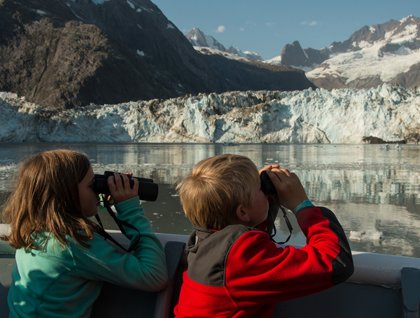 Faith presented a program on the Tlingit culture and connection to Glacier Bay, Chelsea worked with the children on board to paint pictures with melted glacier ice, and also gave a talk on the birds of Glacier Bay. Humpback whales were spotted and as the afternoon turned towards evening we cruised past South Marble Island to see a large number of Stellar sea lions and an assortment of nesting birds, including puffins!