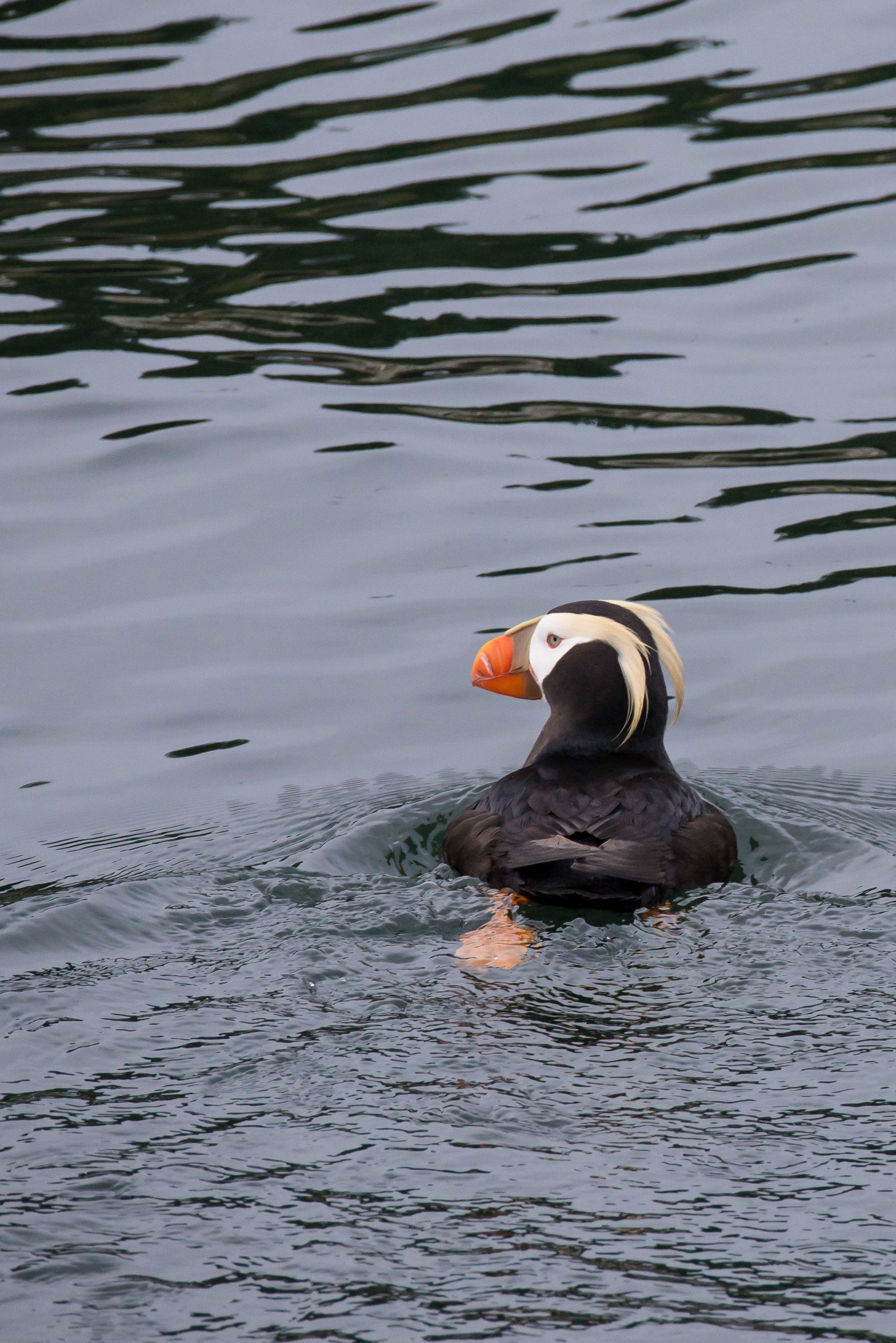 After we were joined by one of Glacier Bay’s national park service interpretive rangers as well as a Tlingit cultural interpreter, National Geographic Sea Lion cast off and headed into the park. The ever-present clouds of our expedition finally lifted as we cruised north, resulting in stunning views of the coastal mountains – including Mount Fairweather, soaring nearly three miles high above us. A photography and viewing stop at South Marble Island allowed our birders to check horned and tufted puffins, pigeon guillemots, and black oystercatchers off their lists. In the waters nearby, sea otters backpaddled while, from the rocks, a raucous group of bachelor Stellar sea lions roared to greet us.