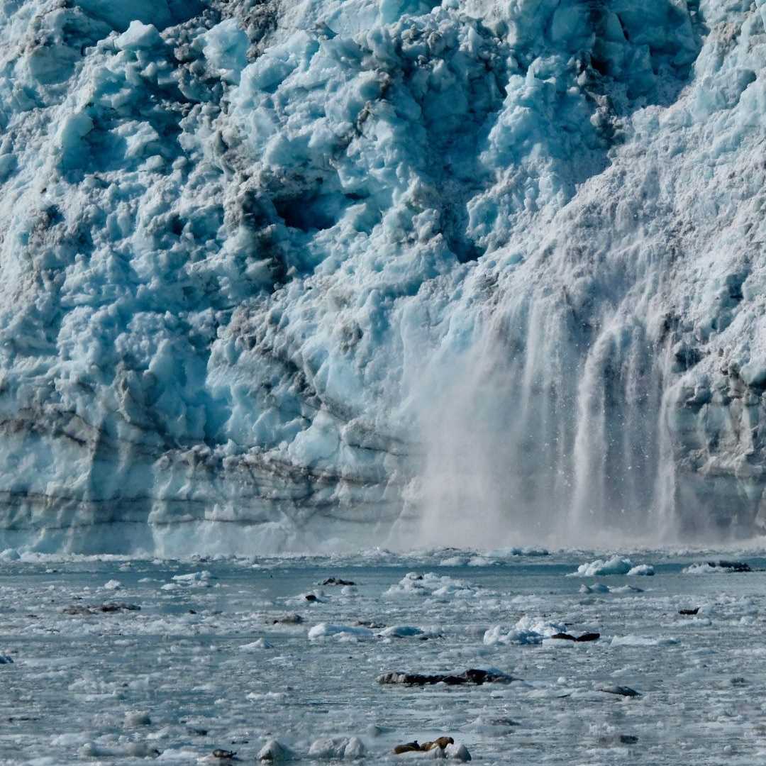 At 6 o’clock this morning, we woke to a magnificent scene—Margerie Glacier one quarter of a mile ahead of the ship, and the Grand Pacific Glacier off our starboard side. We stood on the bow holding warm cups of coffee, gazing at the masses of ice before us. George Vancouver had mapped the region in 1791, but he missed this bay for good reason—it didn’t yet exist. At that time, the Grand Pacific Glacier extended 65 miles further south. Since then the massive glacier has retreated, and now there is a fresh landscape of U-shaped valleys, rounded mountains, polished rock walls, streams, and alluvial fans. Plant life returns, but slowly, and in stages: first there are lichens, then a succession of pioneer plants, alders, and eventually spruce trees. We saw brown bears near the water and mountain goats grazing on high alpine meadows. Marine birds were abundant today: kittiwakes, glaucous-winged gulls, common murres, tufted puffins, pelagic cormorants, and thousands of scoters. Sea otters surfaced near the ship, harbor seals rested on bergy bits, and Steller sea lions grumbled at one another as they crowded on small rock ledges. Glacier Bay is a raw and beautiful landscape, and a habitat that is still evolving as ice continues to retreat.