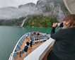 Later, we sailed south looking for wildlife. We were very fortunate to find several brown bears along the shore and many mountain goats on steep cliffs bordering the bay, plus many Steller’s sea lions, sea otters, and nesting sea birds, including everyone’s favorite, the tufted puffin.