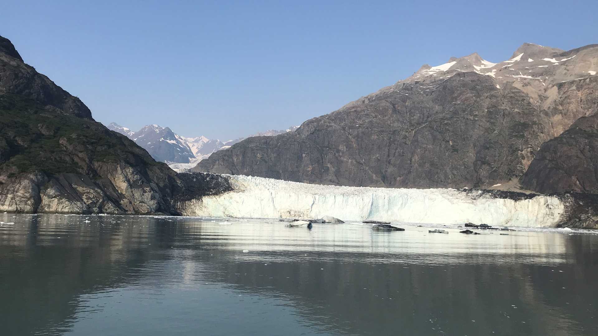 We woke up early this morning at the northernmost point of Glacier Bay National Park. The Margerie Glacier gave us a fantastic pre-breakfast show with two big calving events and some large rolling icebergs. After breakfast we cruised south through the park watching for wildlife along the way. At Gloomy Knob we were treated to three orcas. We were able to identify the pod as Bigg’s (transient) orcas, meaning they hunt mammals like sea lions. Just after the orcas swam away we spotted six mountain goats, including two kids. We even witnessed a rare goat behavior: going all the way down to the tide line to look for some salty snacks. Just past Gloomy Knob we found three brown bears along the coastline. One of them allowed us to watch as it searched the intertidal zone for food. It was able to flip very large rocks with seemingly no effort.