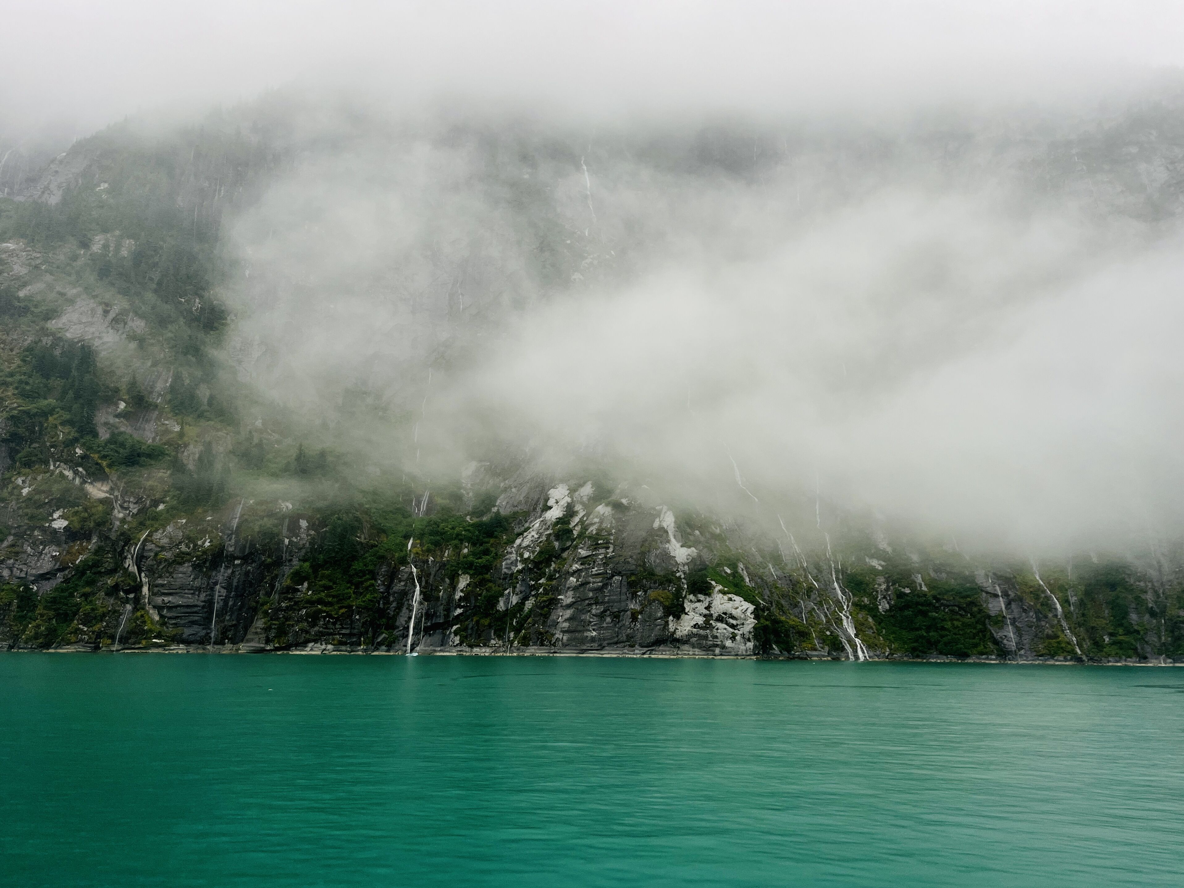 At six o’clock this morning just as the clouds lifted and the fog started to thin, National Geographic Venture approached the Johns Hopkins Glacier. The lighting on the surrounding mountains and glaciers was inspiring to the photographic eye. These views prompted an early morning wake-up call to come join the staff on the bow for a magnificent view of this wonderful “tidewater” glacier!