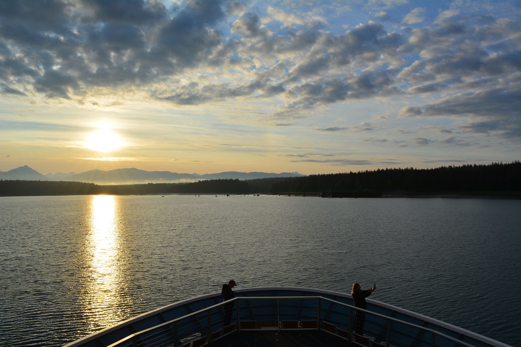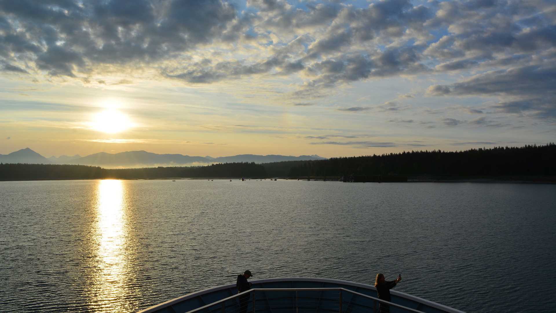 National Geographic Quest quietly glided into Bartlett Cove, located at the southern end of the Chilkat Peninsula, this morning. As guests awoke to a gorgeous sunrise over the mountains, a National Park Ranger and Tlingit Cultural Interpreter joined them for the trip into Glacier Bay National Park and Preserve. The sun shone on blows of humpback whales against a backdrop of the snow-capped Fairweather Mountain Range, and National Geographic Quest headed towards South Marble Island. This first stop in the national park is a known resting spot for marine mammals and nesting site for a plethora of birds. Guests spotted both tufted and horned puffins paddling in the water next to pelagic cormorants, pigeon guillemots, and black-legged kittiwakes. 1500-pound Steller sea lions lounged along the coastline, roaring back and forth to each other, as sleeping sea otters calmly floated along next to the ship.