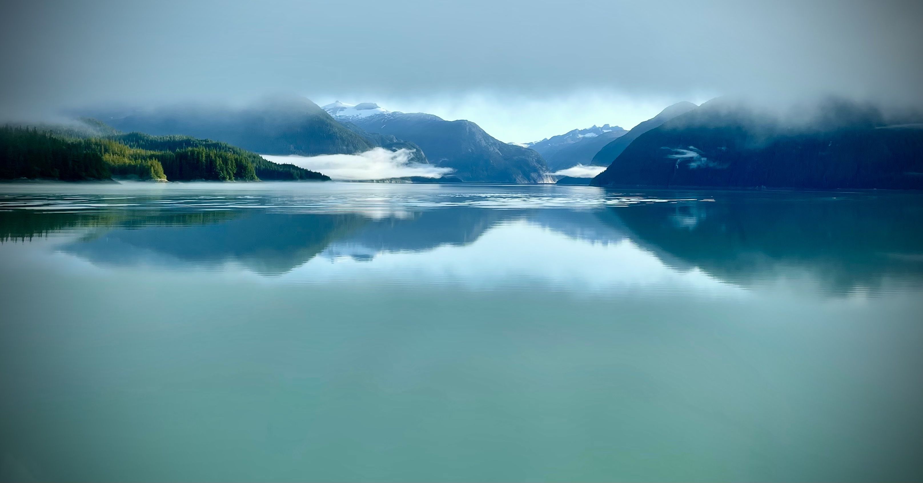 Early risers aboard National Geographic Venture were greeted by calm seas, comfortably cool air, and heavy clouds this morning––perfect conditions for cruising in Glacier Bay National Park where blue ice nestles in high pockets between precipitous peaks, and flows for miles down winding valleys to finally meet the pulsing waters of the steep fiords of Southeast Alaska.
