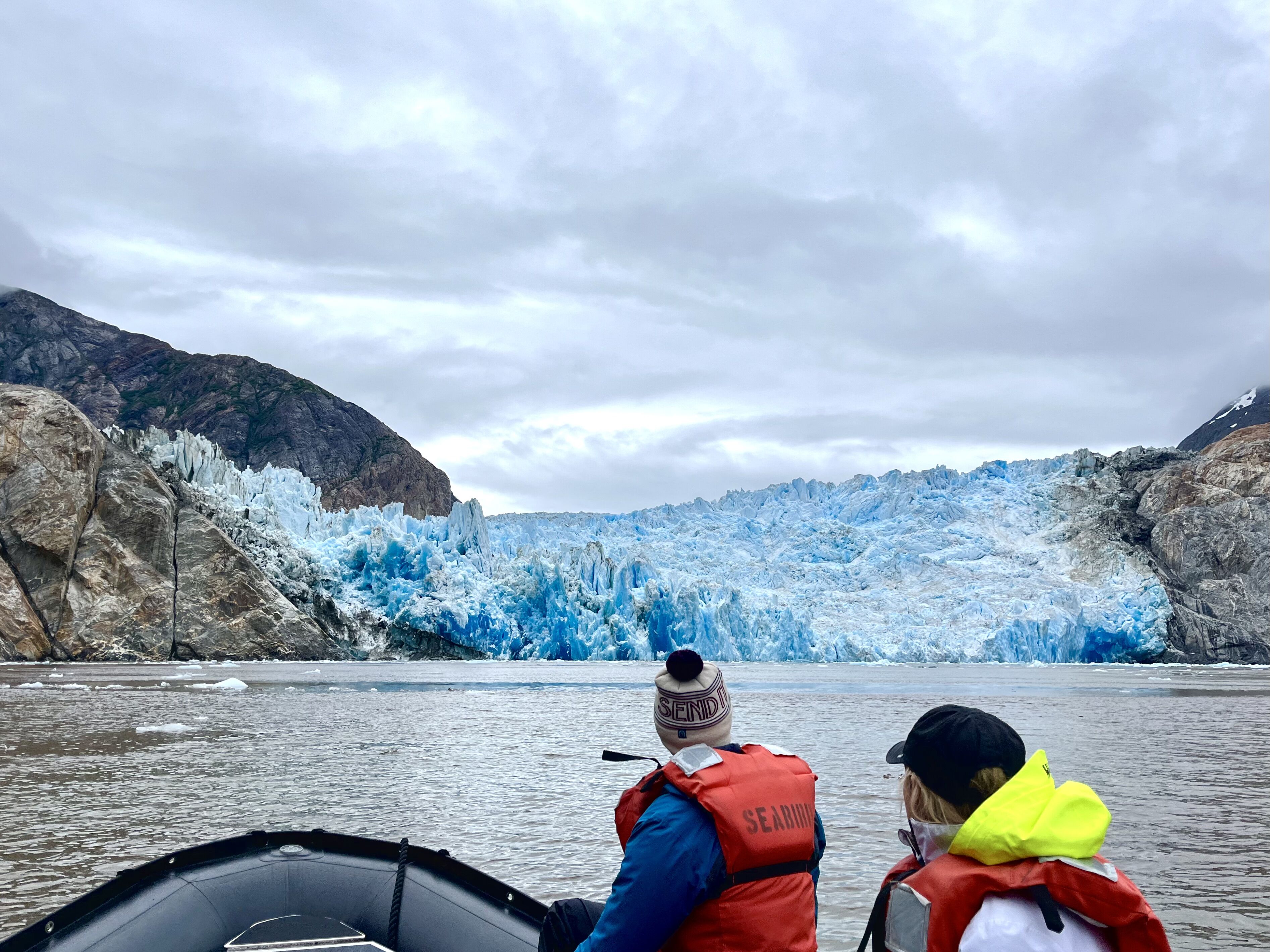 Welcome aboard National Geographic Venture! Today, our expedition immersed us in the ethereal, breathtaking landscapes and vibrant wildlife of Glacier Bay National Park. We ventured to Marjorie and Grand Pacific Glaciers where guests were awestruck by the colossal ice faces gleaming with shades of cerulean and turquoise. Bald eagles soared majestically overhead, while curious harbor seals and sea otters bobbed playfully in the icy waters. Along the shores of Russel Cut, Gloomy Knob, and South Marble Island we encountered mountain goats traversing the cliffs, a black bear perusing the shoreline for food, Steller sea lions basking in the sun, comical puffins, and Common murres darting to swim underwater. Our knowledgeable naturalists and national park ranger provided fascinating insights into the park's geological wonders and ecological diversity, enhancing our appreciation for this UNESCO World Heritage Site.