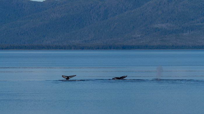 Right after dinner, we berthed at the park headquarters in Bartlett Cove, where many of us took advantage of the late sunset and went ashore to walk on a beautiful trail through the forest. Near the lodge is an impressive reconstruction of the skeleton of an adult humpback whale, as well as exhibited Native American cultural items, including a huge canoe, a reconciliation totem, and a lodge house. The wildlife highlight was the sighting of a couple porcupines, which seem very much at home near the park headquarters. Since we know Bartlett Cove was freed of its ice cover only a couple centuries ago, it was interesting to observe how the impressive plant life and isostatic rebound has reclaimed the land.