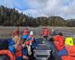 Landforms with names that evoke the divine tend to be hits aboard Lindblad Expeditions’ ships, and God’s Pocket is no exception. We cruised into this section of Misty Fjords through a light drizzle. The day’s highlight was Zodiac cruising, where wildlife stole the show. River otters ran through flocks of common mergansers resting on the waterway’s muddy banks; minks snaked through the maze of rocks along the shoreline looking for a tasty morsel; harbor seals bobbed on the surface. We even observed two Sitka black-tailed deer swimming from one island to another, perhaps beating the heat of the midday sun (which arrived to the delight of all).