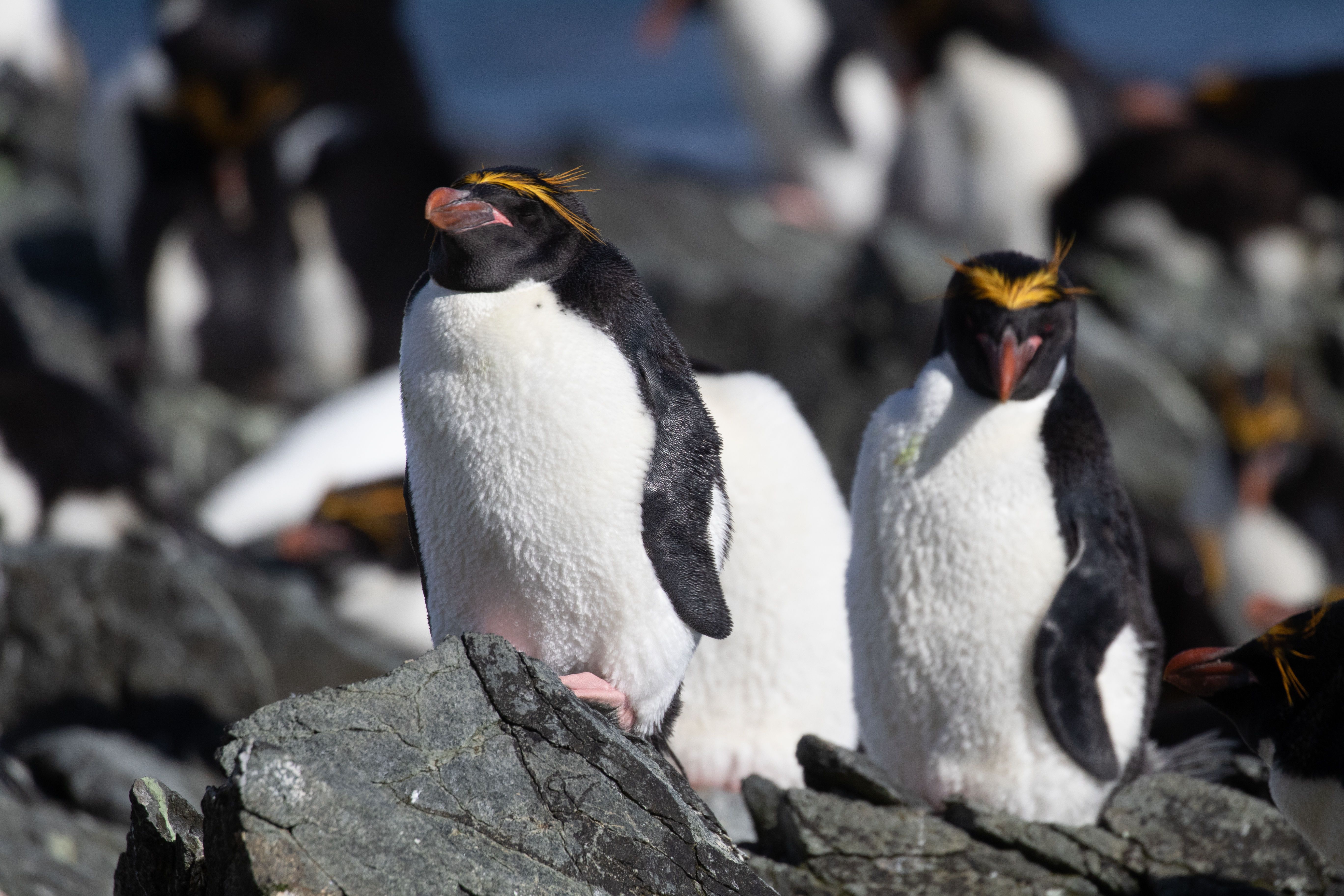 At Cooper Bay, the ship anchored out of the wind blowing around the eastern end of the main island so we could get out in boats for a cruise along the shoreline. At one small channel along the rocky coast, there was a landing place for macaroni penguins to land on a beach and then make their way up a steep cliff to their nesting colony. All along the shore we could see jousting fur seals and resting elephant seals. Gentoo and king penguins were also coming and going. The wildlife was activity was endless.