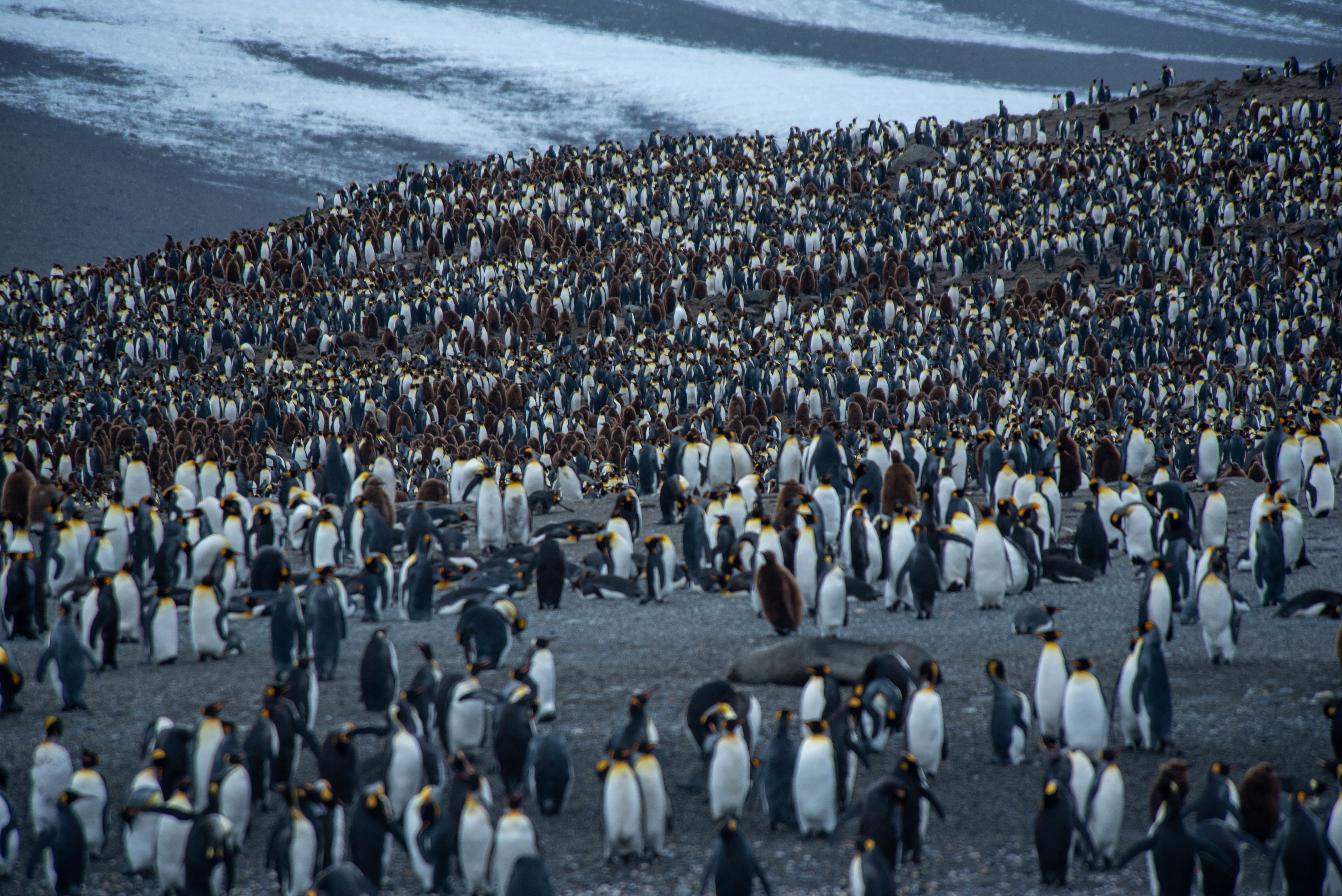 Excitement was somewhat overwhelming as guests stepped foot onto South Georgia for the first time. Elephant seals lay on the beach like snoozing giant slugs. Scattered amongst them were Antarctic fur seals varying in size since males are much larger than females. Naturalist staff onshore led small groups down the beach to an area where the main group of king penguin chicks were nesting. What a morning!!