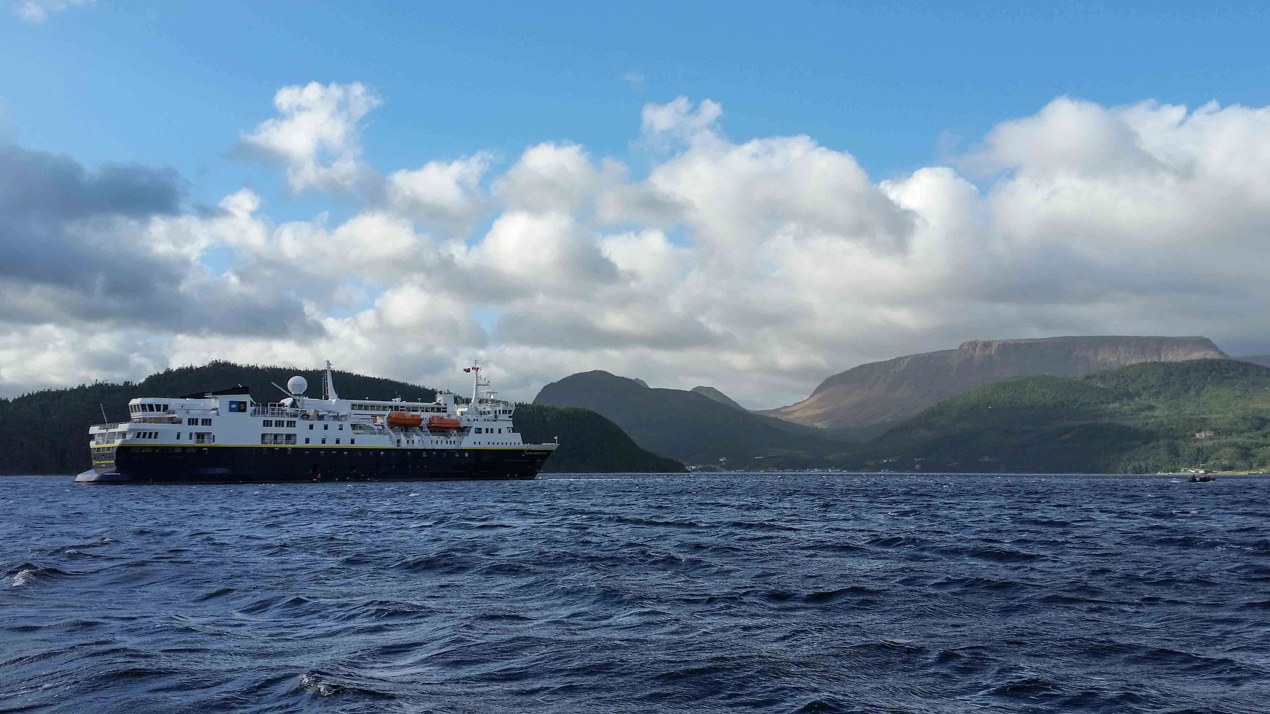 Relatively strong winds, remnants of tropical storms from the south, have been with us for a couple days creating challenging conditions for finding protected anchorages and for operating Zodiacs for landings. Our Captain and crew however are quite use to this so with a little maneuvering and cunning we managed to reposition the ship across the fjord to Norris Point for our afternoon explorations. Long before this area was set aside as a national park it has been occupied by hardy peoples making their living from the waters and forested hills. One option for this afternoon would learn more about life here as well as explore the North coast of the parks geology and natural features. A second outing would also head out along the sea battered North shore and then head inland on foot to explore another distinctive landscape of Gros Morne, The Western Brook Pond. Hiking through vast expanses of marsh or bog habitat on trail and boardwalk to the “pond” which is technically an ancient fjord, now a freshwater glacial lake, with the peaks of The Long Range Mountains forming an impressive backdrop. By 1700 we were back at the landing and heading towards the ship for the evening events. After dinner our historian, Vincent Butler gave a wonderful presentation on the Vikings, and Norse cultures in preparation for tomorrows visit to L'Anse Aux Meadows, the UNESCO site preserving the furthest west known Norse settlement in North America.