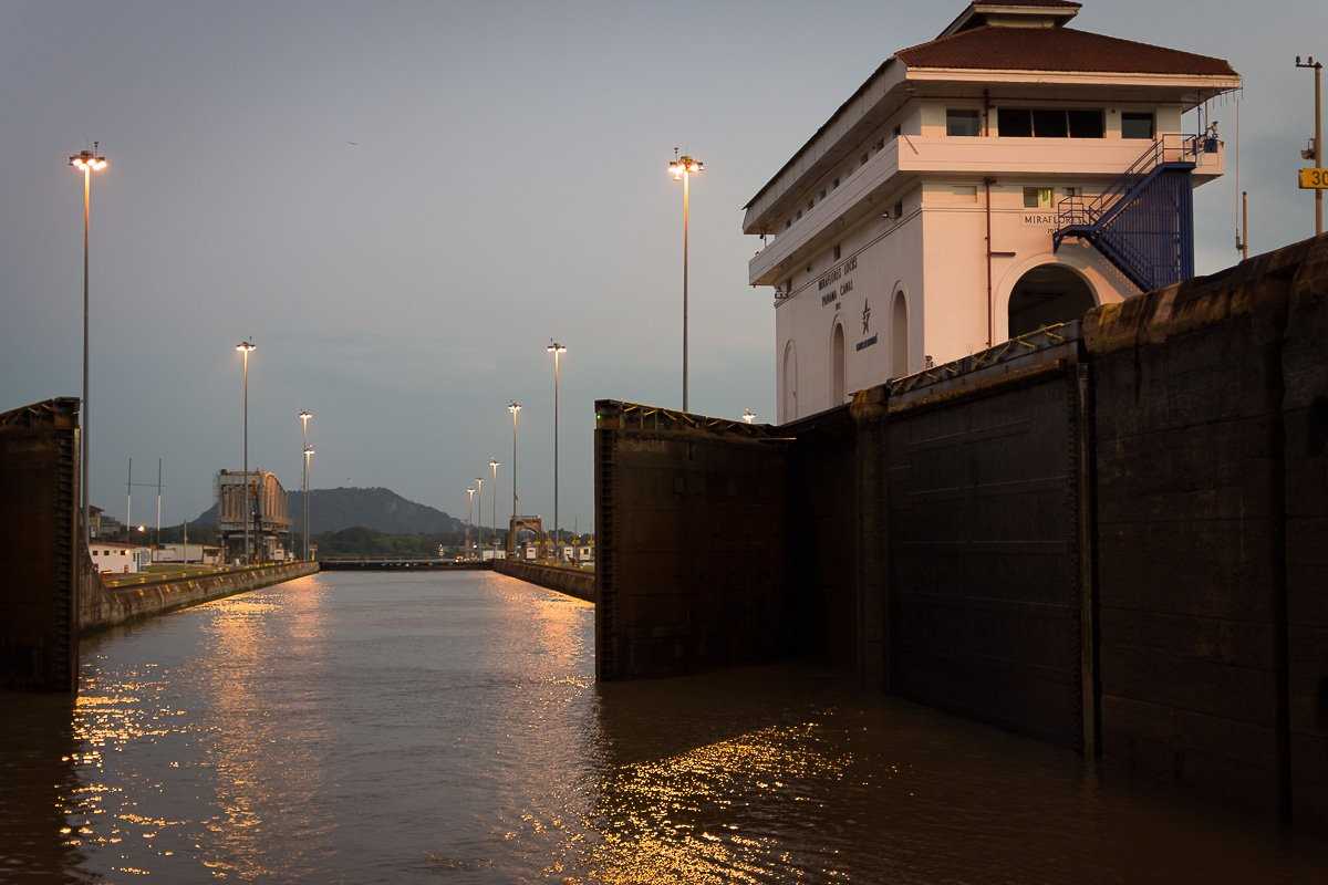 On we went towards the entrance to one of the engineering wonders of the modern world. As we approached the Panama Bay, we could see from the distance the silhouette of the very modern capital city of Panama, skyscrapers replaced the tall tropical rainforest trees and dozens of ships of any kind, replaced the monkeys and the butterflies. We had left nature behind and entered another incredible site, but this time one of cement, the Panama Canal, the old and the new. Into the older set of locks we went, first under the Bridge of the Americas, then the Miraflores Locks, and a quick view of the new Pacific larger set the Cocoli Locks, then the Miraflores Lake, the Pedro Miguel Locks, the infamous Culebra or Gaillard Cut to finally enter, and sleep, in the Gatun Lake. We all went to bed, early or late, with high expectations for the next and last day of our excursion.