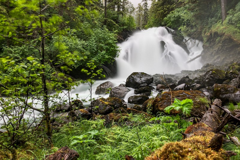 We woke to pretty clouds above the tree-covered hills as we sailed into Idaho Inlet, seeking wildlife. After breakfast, we landed at Fox Creek and hiked into a small waterfall along a salmon stream, through stately spruce and hemlock trees. The temperature was cool in the forest and black-capped chickadees sang to us as we walked along. Kayakers paddled in a beautiful cove with mirror-like waters, and other guests headed out on a cruise along the shoreline to search for wildlife and birds. It was a stunning morning. We sailed to the Inian Islands anchorage during lunch, and soon we were launching our expedition landing crafts to explore. The waters of the Inian Islands and Cross Sound are rich with nutrients due to the mix of upwelling currents and flooding tides, providing a wonderful food source for marine wildlife and seabirds. On this wonderful day, we saw Steller sea lions, sea otters, many humpback whales, and a minke whale. Late in the afternoon, we sailed over near Elfin Cove and went ashore to explore this picturesque and quaint fishing village on foot, making friends with the local dogs and talking with fisherman as we walked along the boardwalks of town.