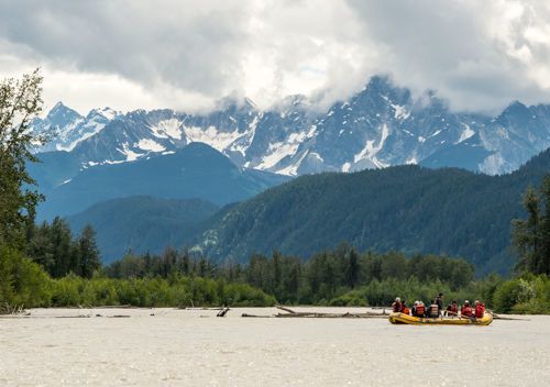 Next, we boarded a set of rafts to float down the Chilkat. This glacially-fed river is heavy with silt; its murky gray color makes it impossible to gauge depth unless you can read the water. One of the rafts managed to get stuck in a set of gravel bars, and its passengers had an exciting but very slow ride back to the main river channel. The day ended with good cheer and dinner, as we head south to tomorrow's adventures.