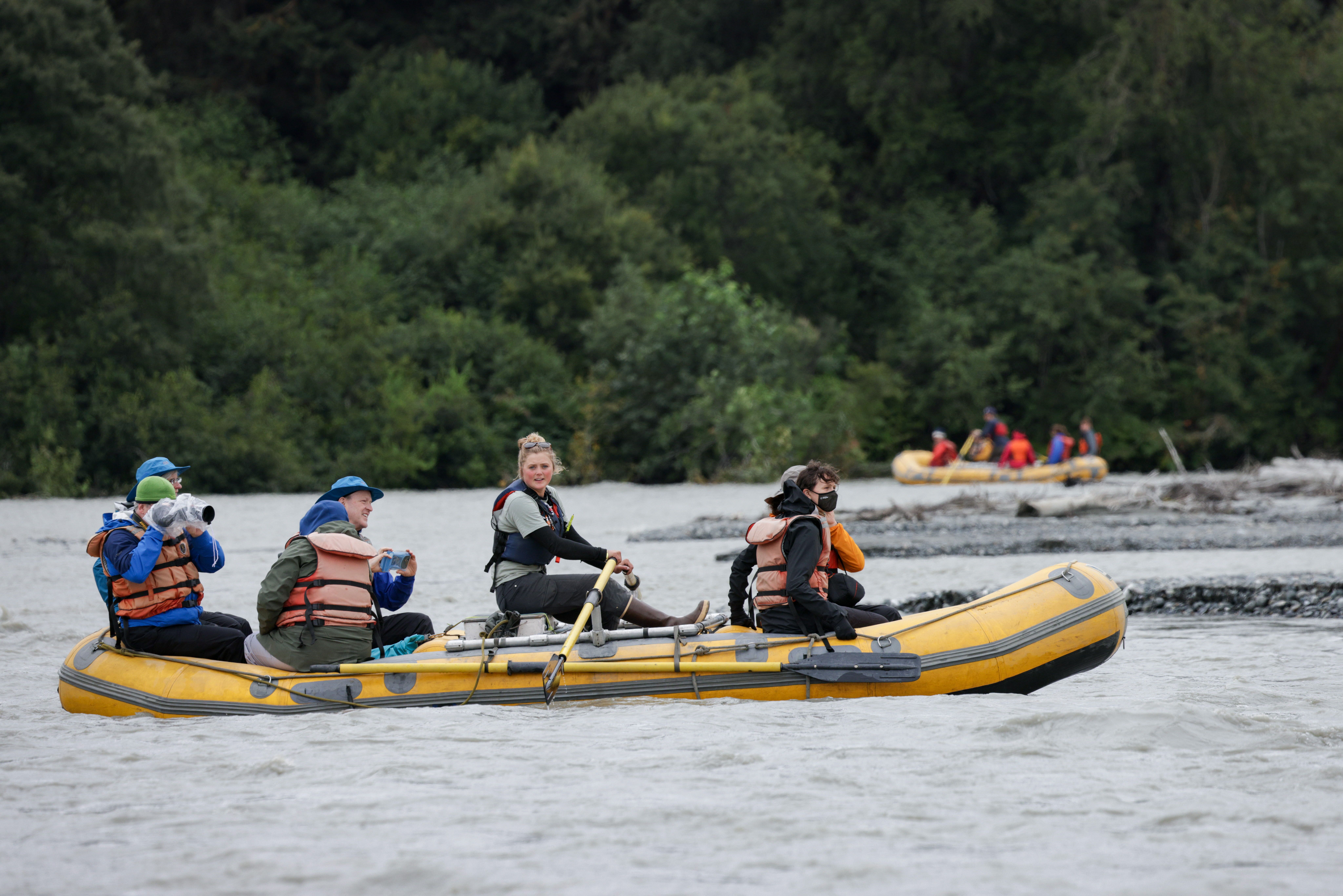 This morning we arrived at Wrangell, a small Alaskan town with a lot of history. The Tlingit people have called this area home for centuries and provided guests with wonderful opportunities to learn about their culture. We visited Chief Shakes’ house, which is a replica of the traditional Tlingit clan house. Inside we met a cultural interpreter who described the intricate carvings inside the clan house and told us of Tlingit traditions. In addition to this cultural experience, guests had the opportunity to explore a petroglyph beach and search for thousand-year-old rock carvings. For those interested in photography there was a photo walk around town and to the Cultural Center and Carving Shed, where we witnessed a master carver working on a totem pole. If that was not enough, we had guests on e-bikes and a jet boat tour up the Stikine River. It was a full day packed with cultural and adventurous opportunities.
