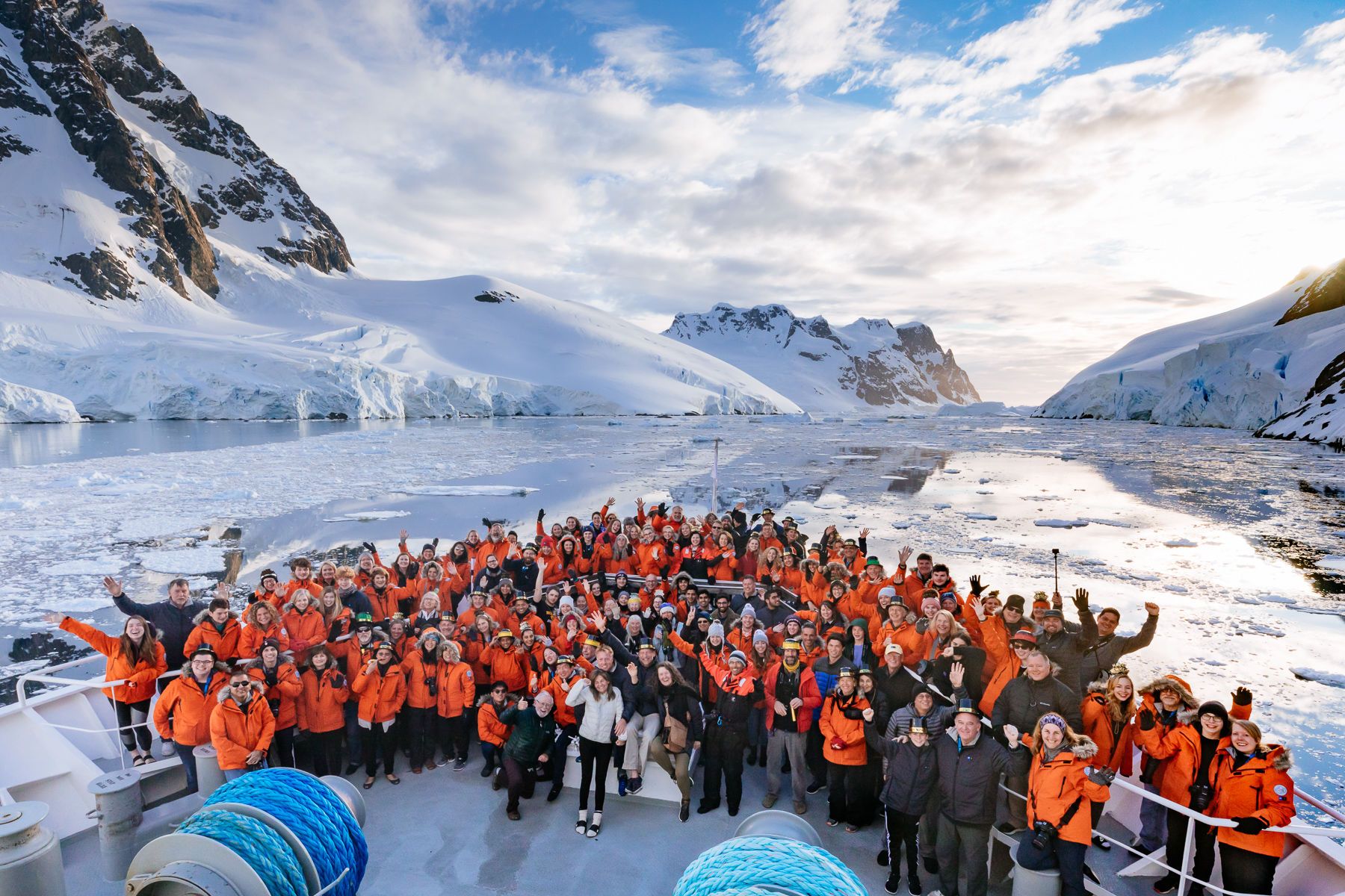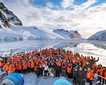 We have met Antarctica! Just after noon we spotted our first iceberg and knew we were approaching. By the time lunch ended National Geographic Explorer was cruising amongst the South Shetland Islands, just off the Bransfield Strait, on the Northwest side of the Antarctic Peninsula. The navigation was full of beautiful sights of glaciers, penguins in the water, and whales to boot! We motored into Halfmoon Island to the site of a scarcely manned Argentine research base and landed amongst the abundant chinstrap penguins and numerous seabirds and seals scattered across the beach. A fantastic place to begin our tour of Antarctica. After a nice leg-stretch around the island and plenty of time to fill up our memory cards we headed home to the ship for dinner but were delayed by encountering a tabular iceberg of enormous proportions.