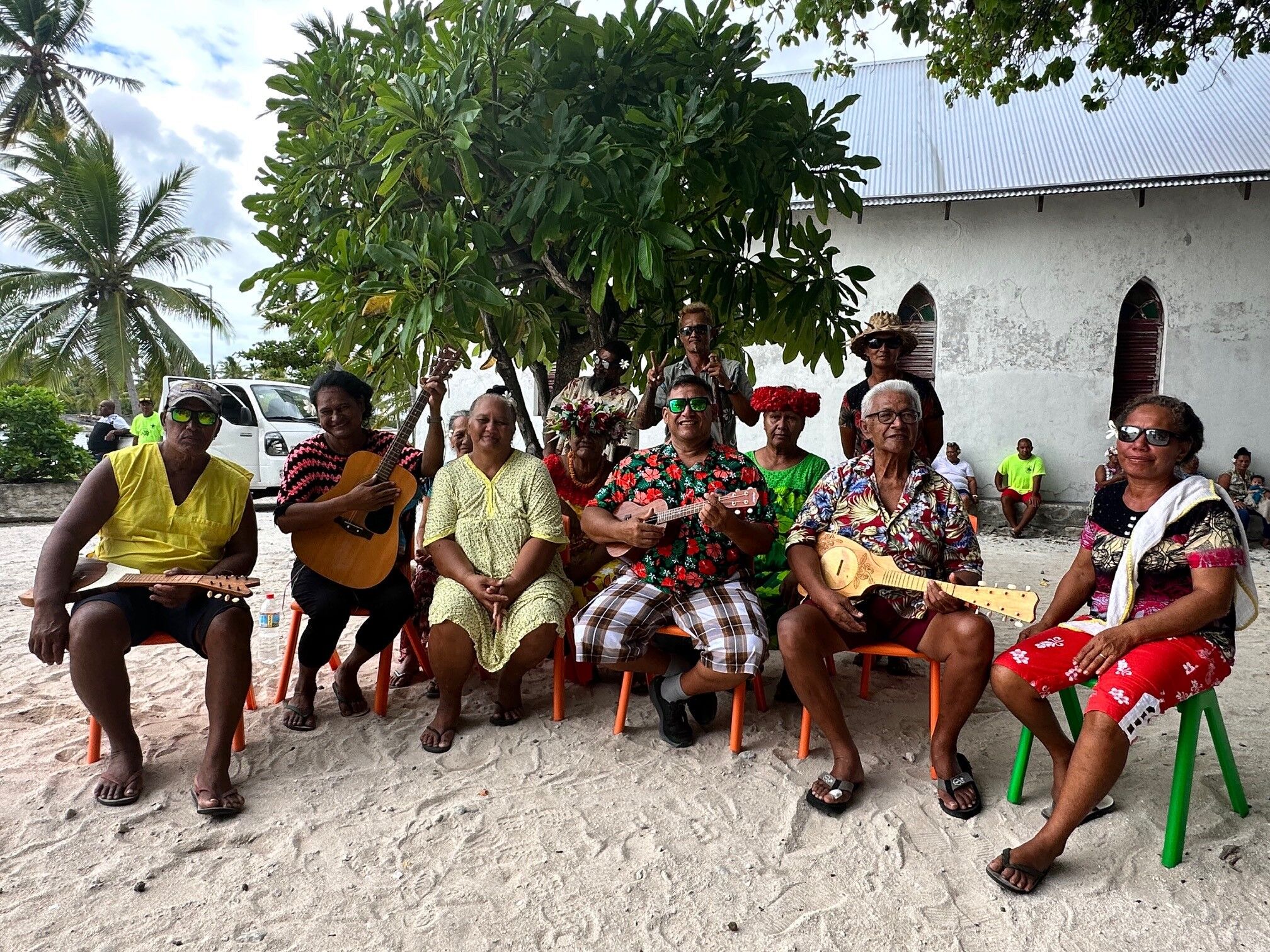 Photo caption and photographer: A band greeted us on Amanu Island. Photo by Todd Gooding