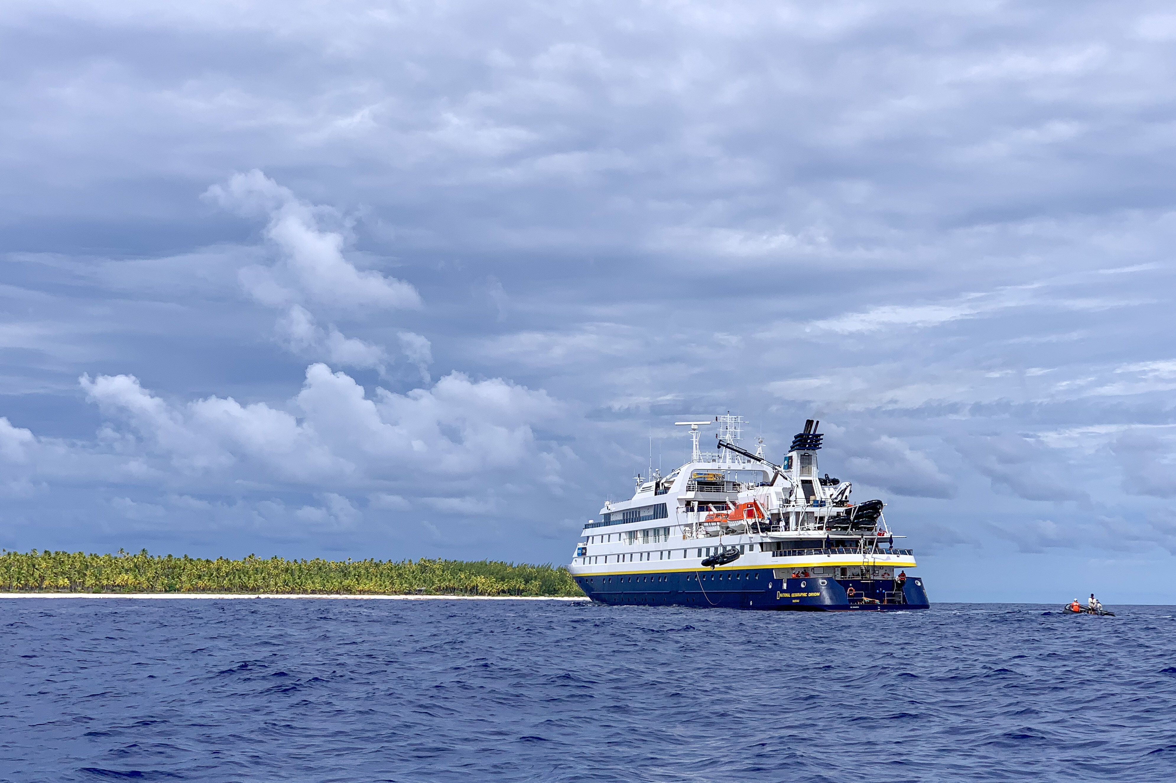 Amanu Island gave us the warmest welcome! A band greeted us, and we were presented with handmade hats made from palm fronds and necklaces made of an array of local flowers. The band marched us into town, where we enjoyed a performance from thirteen children ranging in age from four to eight years old. They showed off a local dance routine as the band accompanied them. The population of the small village is 90, and many of the residents participated in this wonderful event. After walking around town, we set sail into the sunset after finishing another epic day.