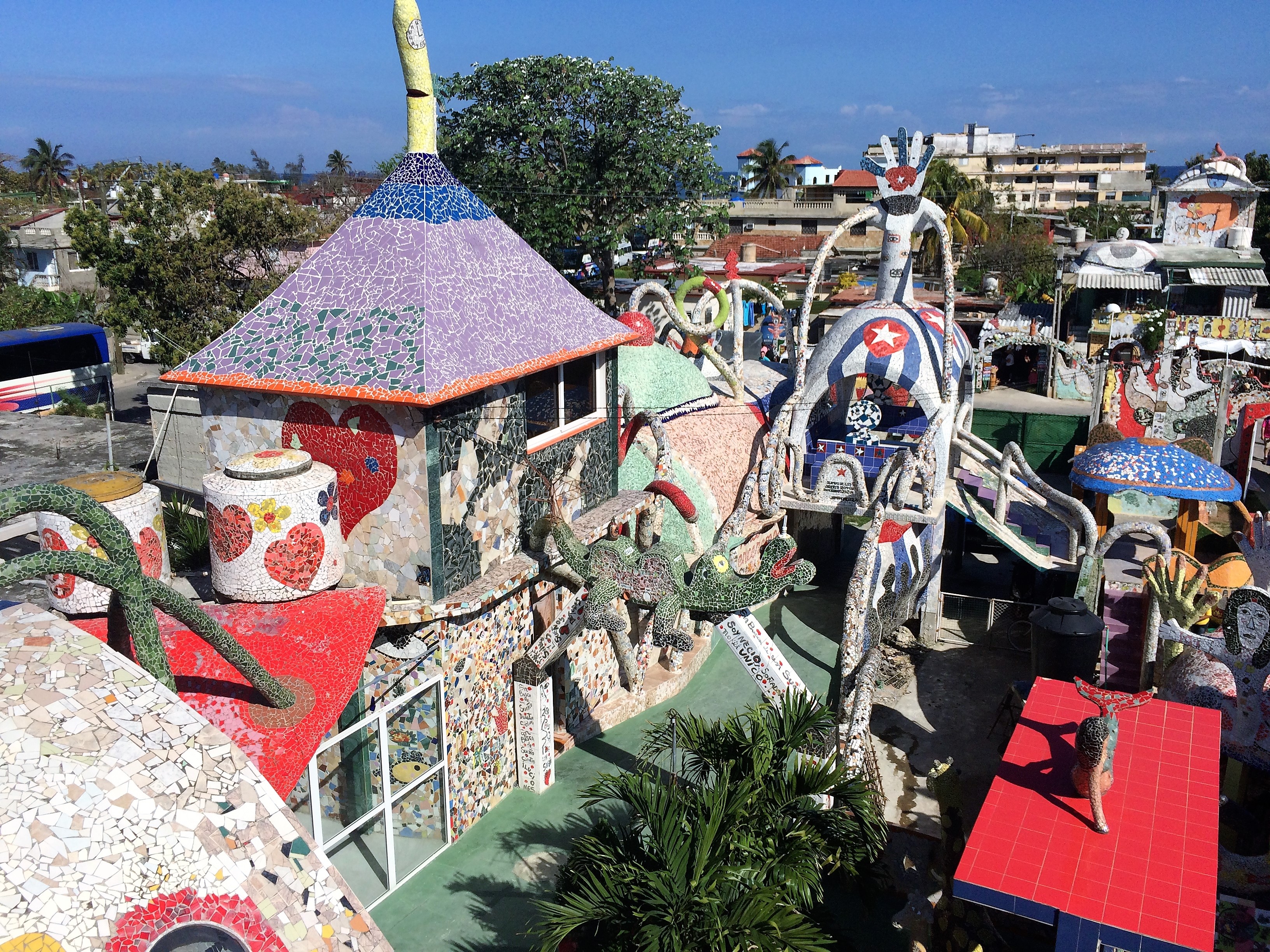 Part of our group left Havana behind this morning for a scenic drive towards the small fishing village of Jaimanitas. This village has been the home of Cuban artist Jose Fuster for more than 30 years. Since returning from Europe with a head filled with inspiration from Gaudi, Picasso and others, he has transformed his little neighborhood into an abstract, mosaic fantasy land, aptly named Fusterlandia. Over this period, he has adorned roofs, walls, doorways and benches, stretching for blocks around the epicentre of his studio, with his brightly-colored sculptures and mosaics: mermaids, fish, palm trees, roosters, Santería saints and figures from the Revolution. More than 80 neighbors have allowed Fuster to use their homes as his canvas, and it is truly an impressive sight.